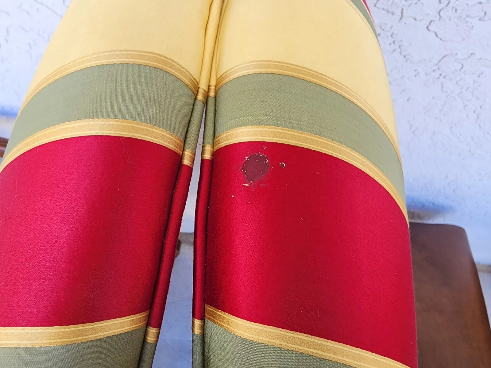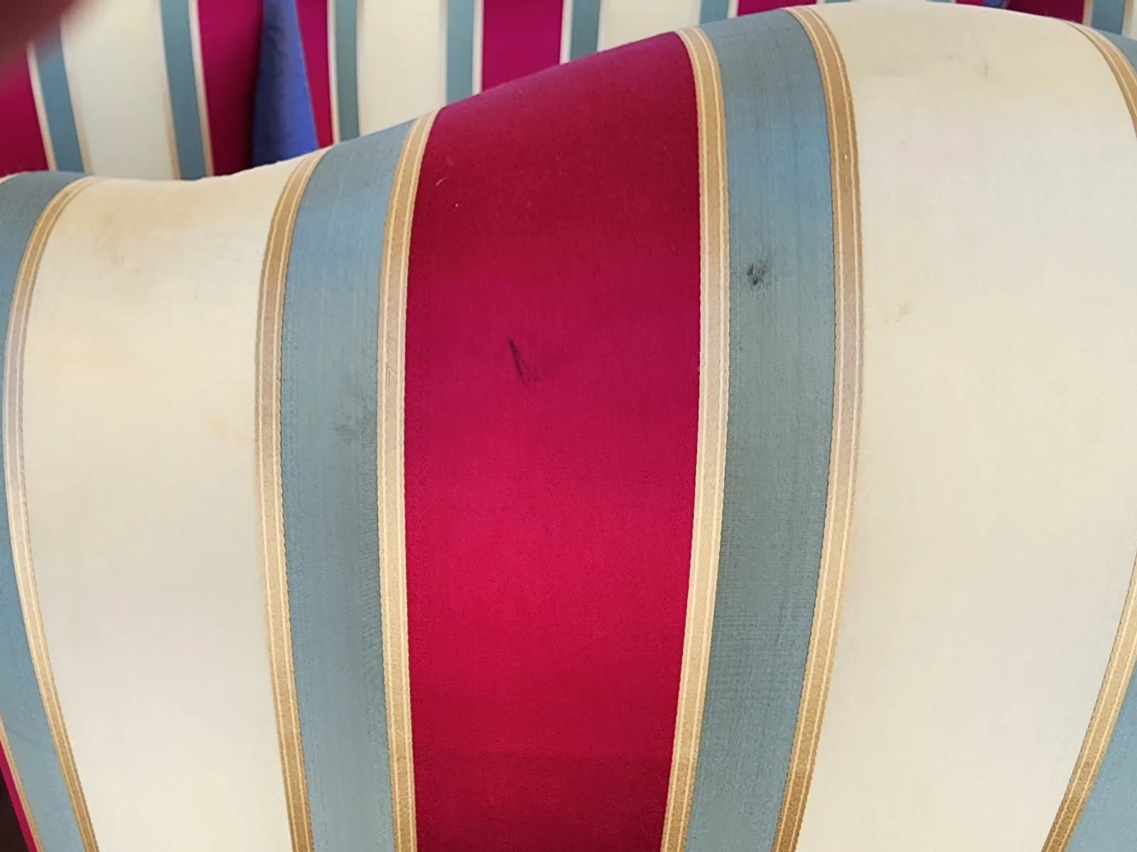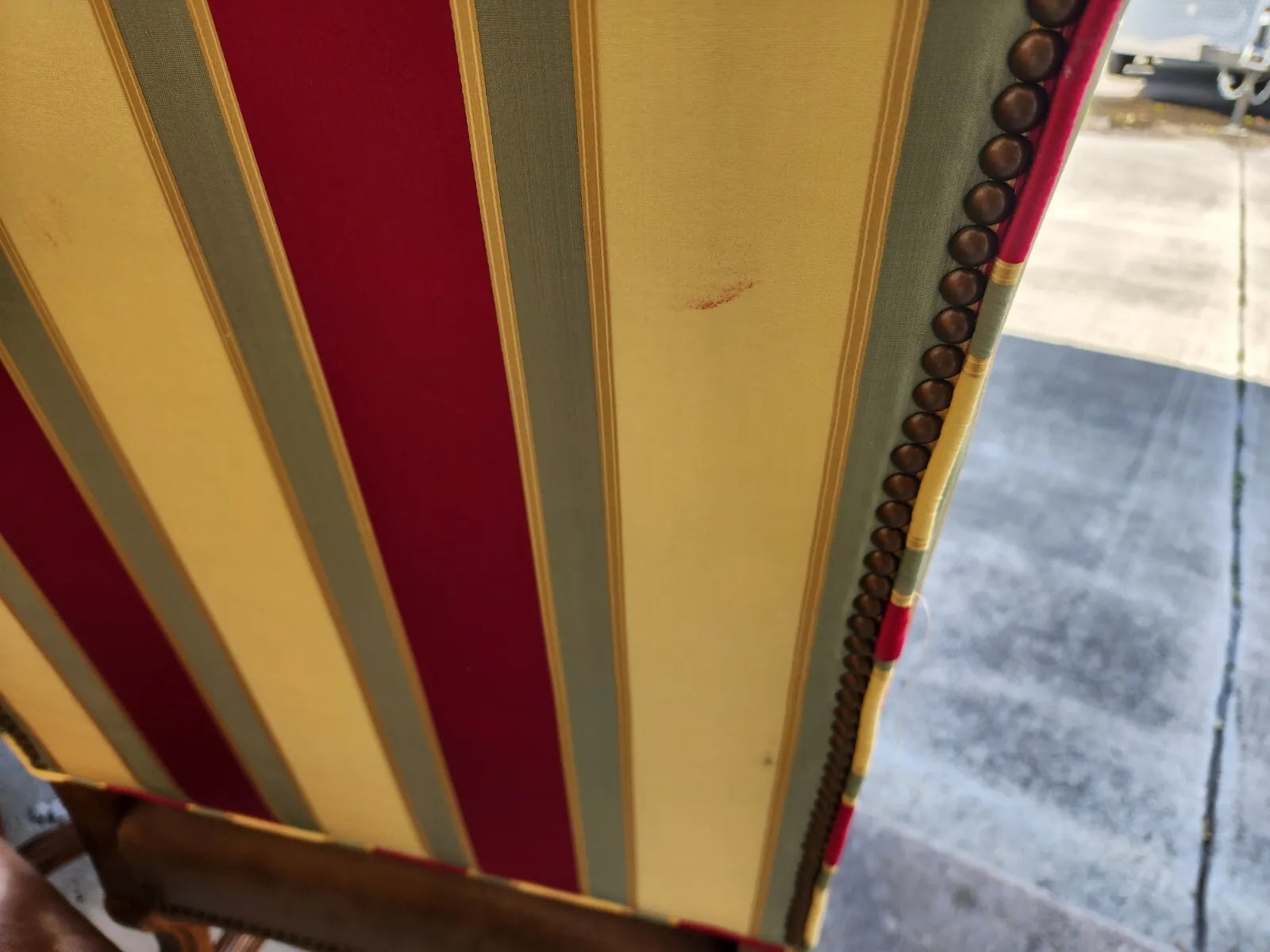 In good, structurally sound and sturdy condition with no rips, tears, cuts, or fading to leather seats or fabric. There are some stains on the cotton fabric as shown. We have not tried to clean the stains and most of them should benefit from a professional cleaning. The photos and video are an important part of the item description and condition so please use the zoom feature to view them closely.