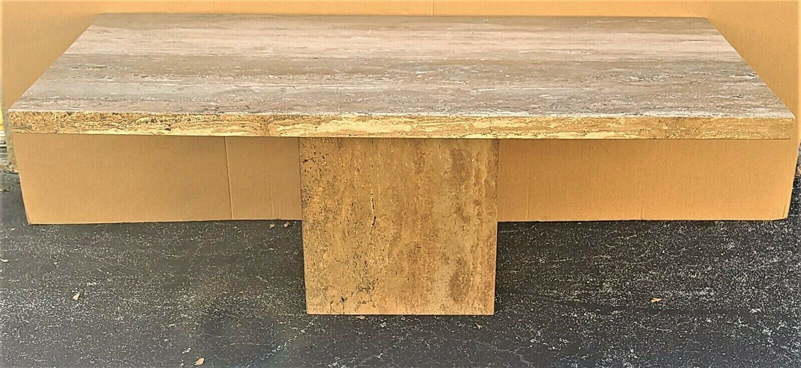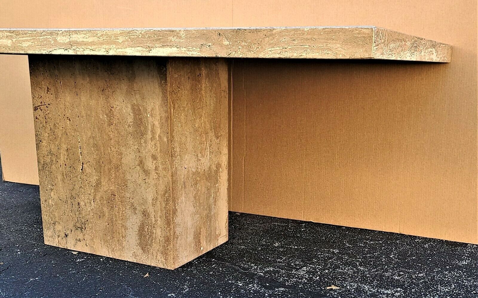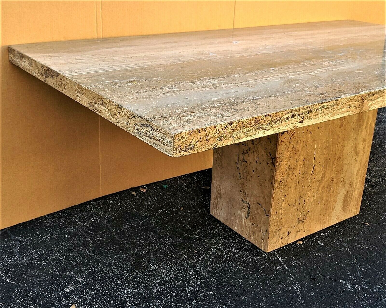 1970's Italian Walnut Travertine Highly Polished Marble Dining Table
