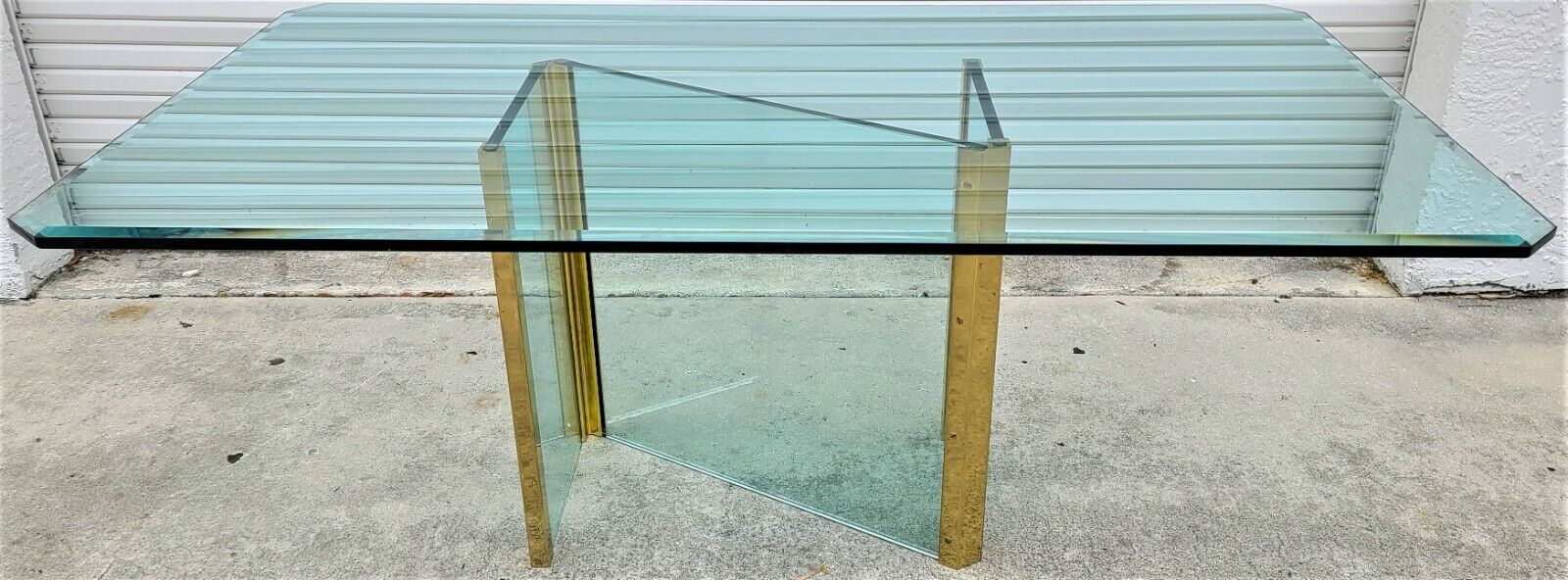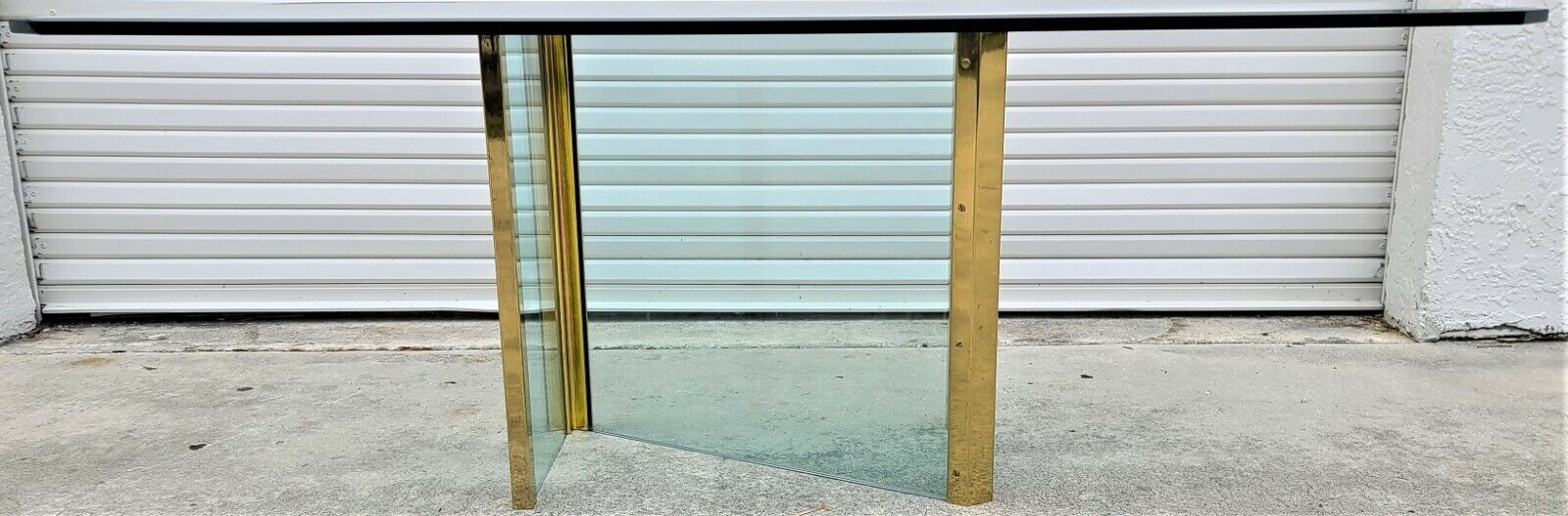 1970's Leon Rosen for PACE COLLECTION Glass & Brass Dining Table 72" x 40"