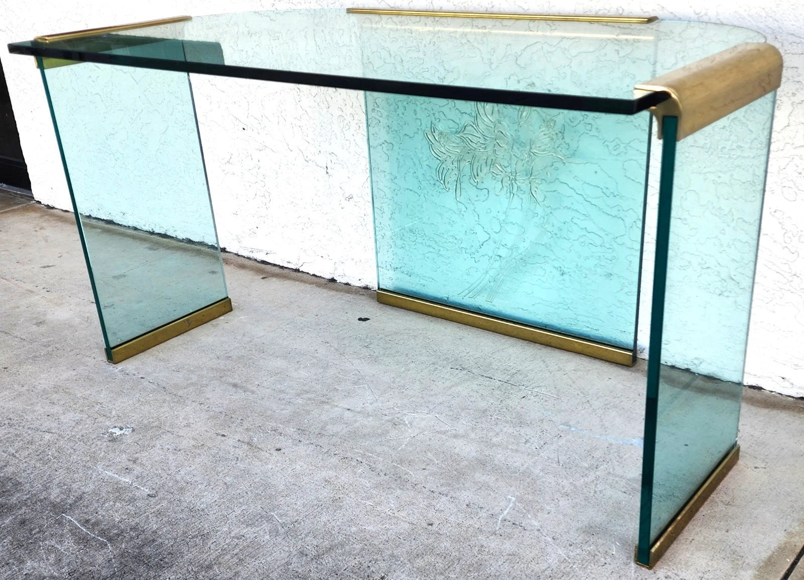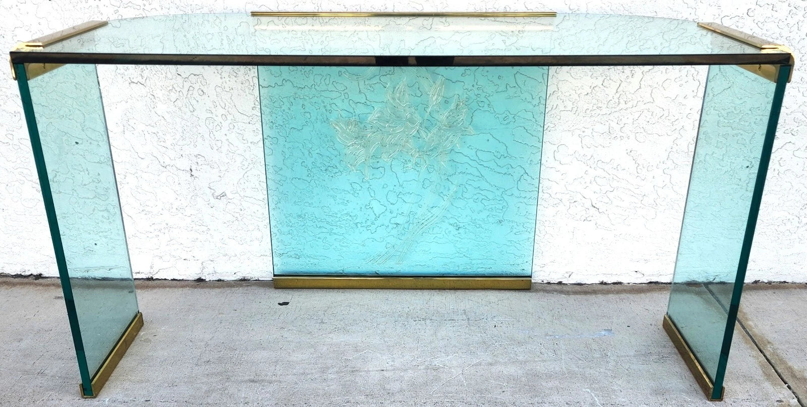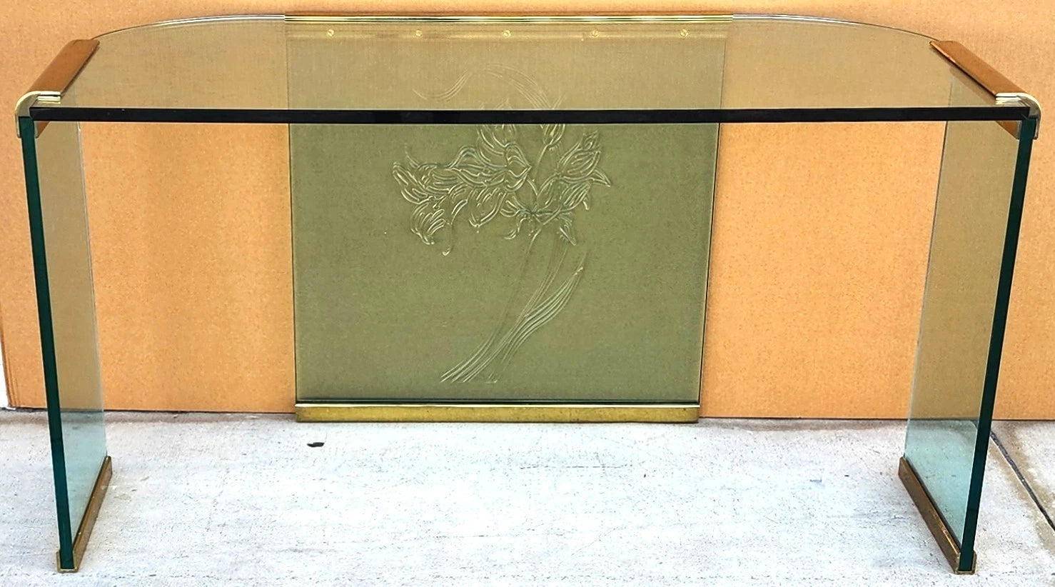 1970s Vintage Leon Rosen for Pace Glass and Brass Desk