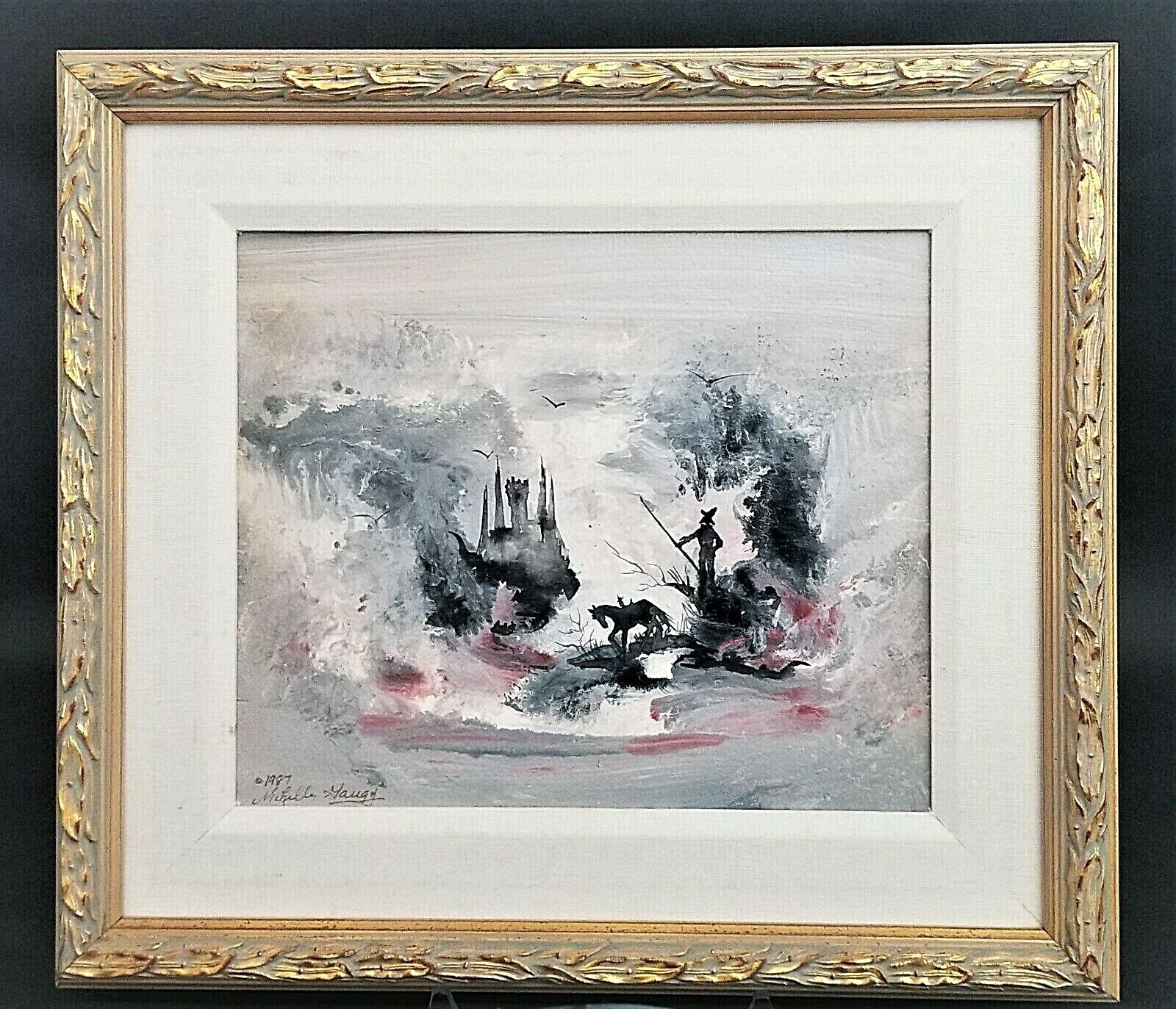 1987 Michelle Gaugy Framed Acrylic Don Quixote Themed Painting "Another Day"