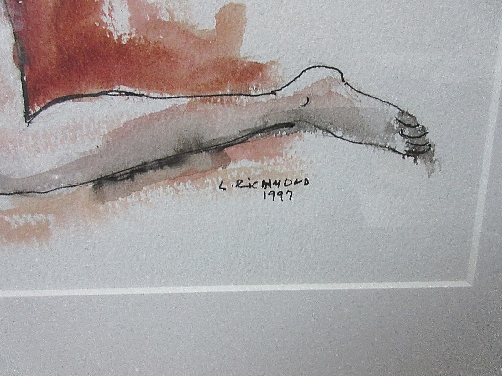 1997 Signed L RICHMONDS Female Nude Watercolor Painting on Paper Framed
