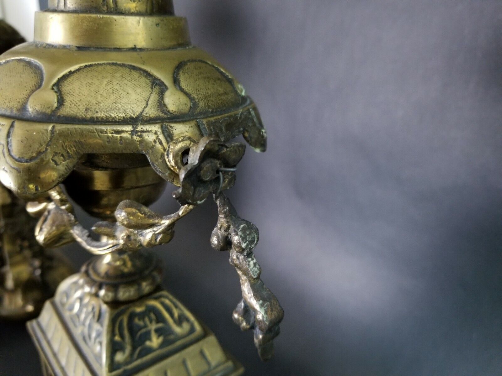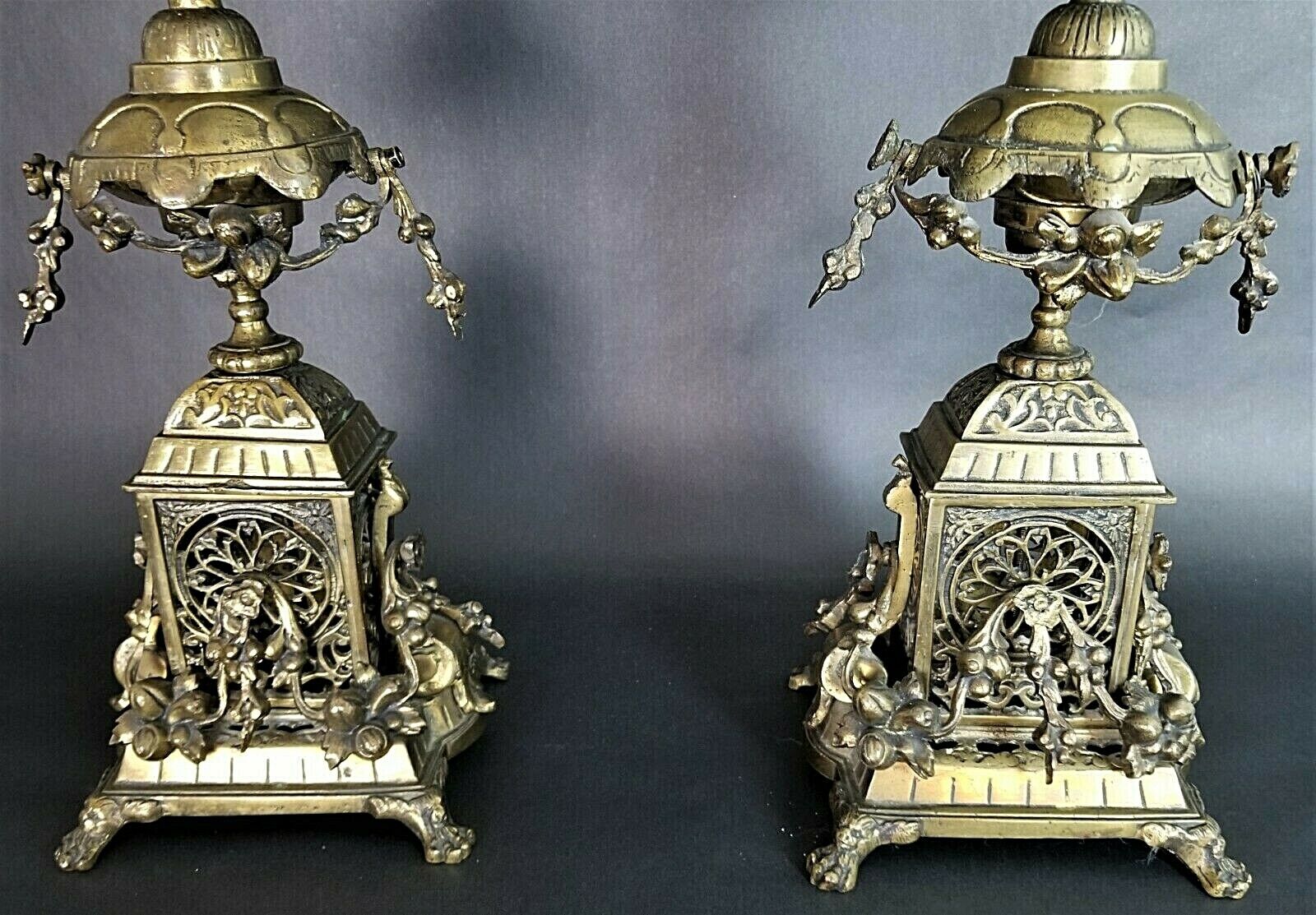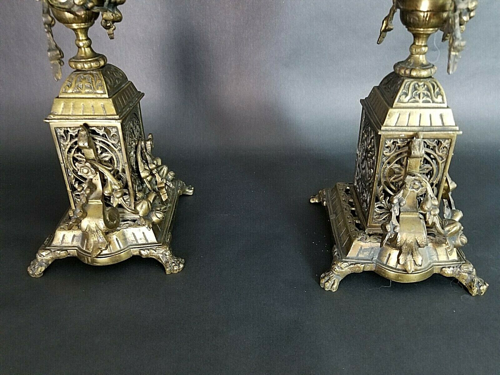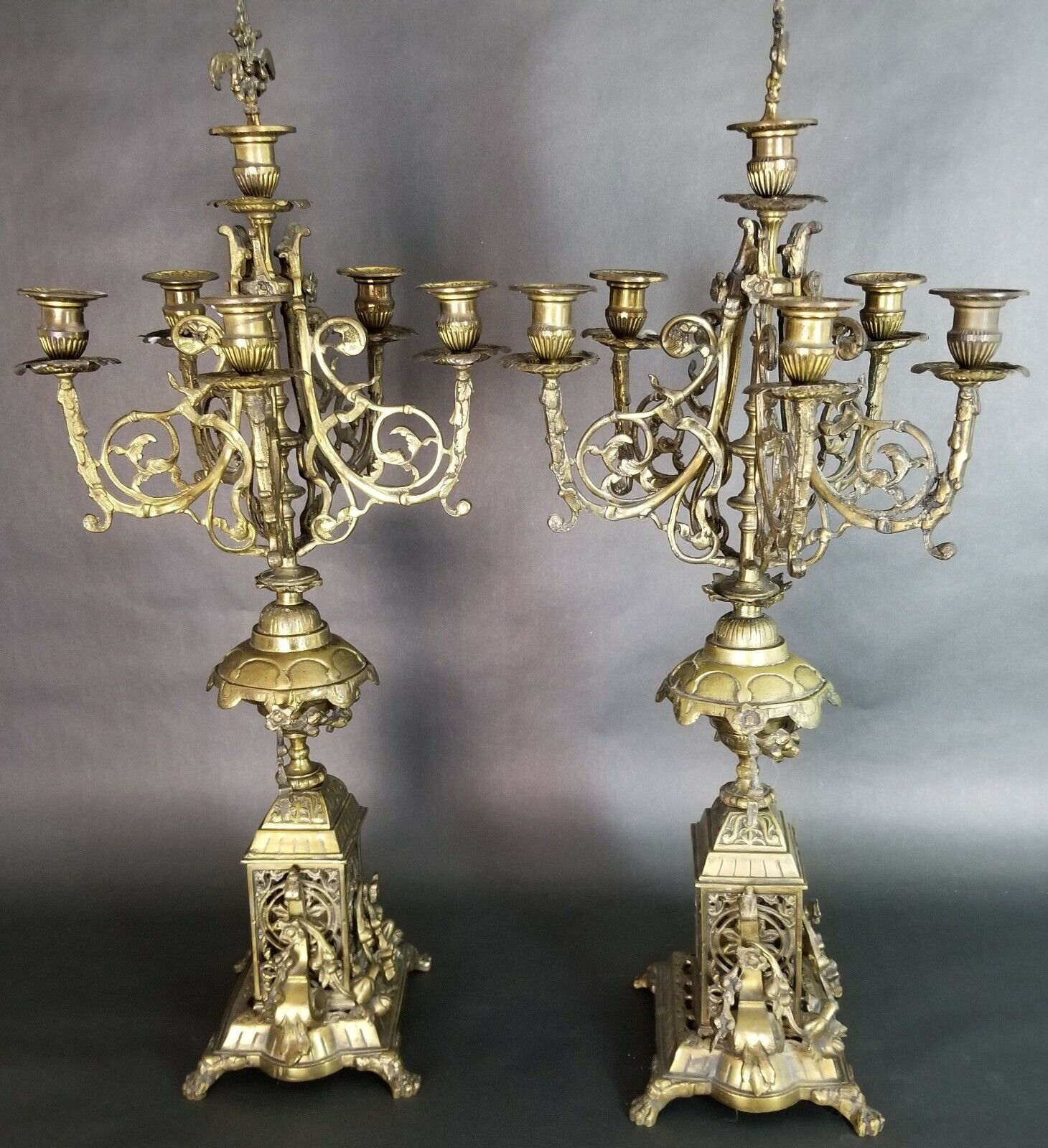 (2) Antique Italian Ornate Bronze French Louis XV Rococo 6 Point Candelabras