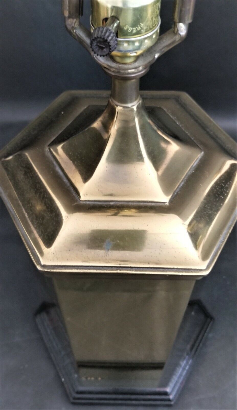 (2) Vintage Brass Asian Chinoiserie Hexagon Cannister Ginger Jar Table Lamps
