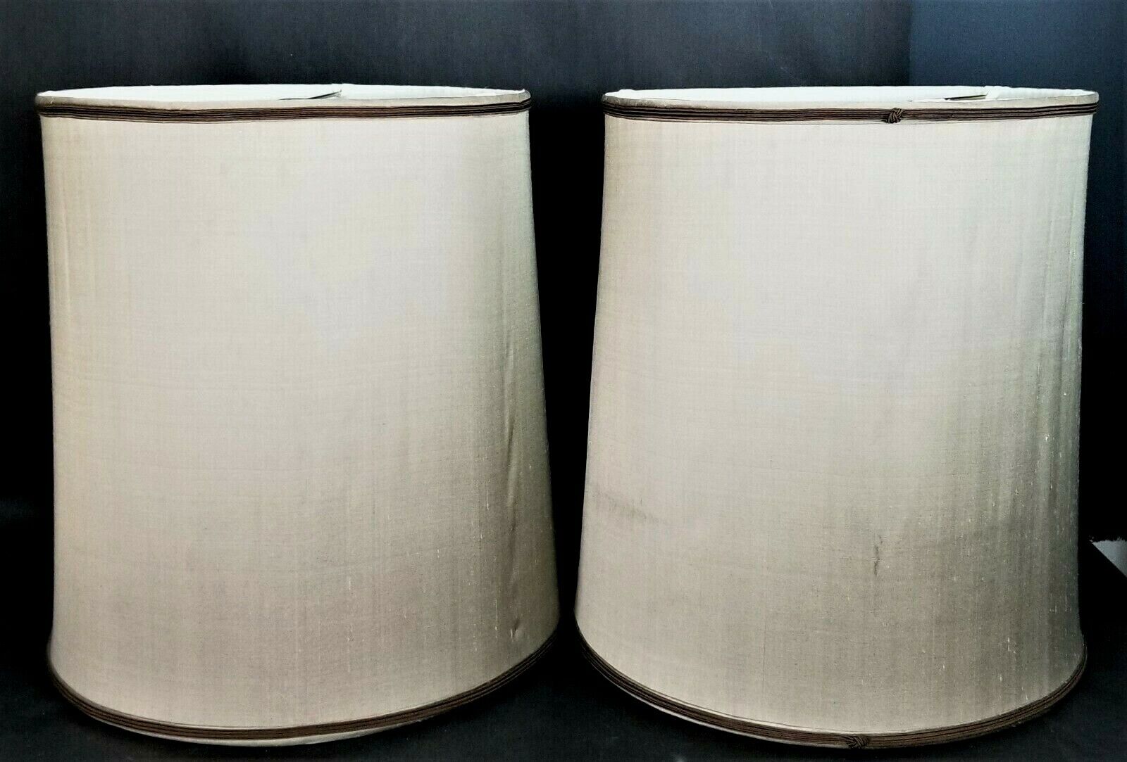 2 Vintage STIFFEL Enamel and Brass Candlestick Lamps with Dupioni Silk Shades