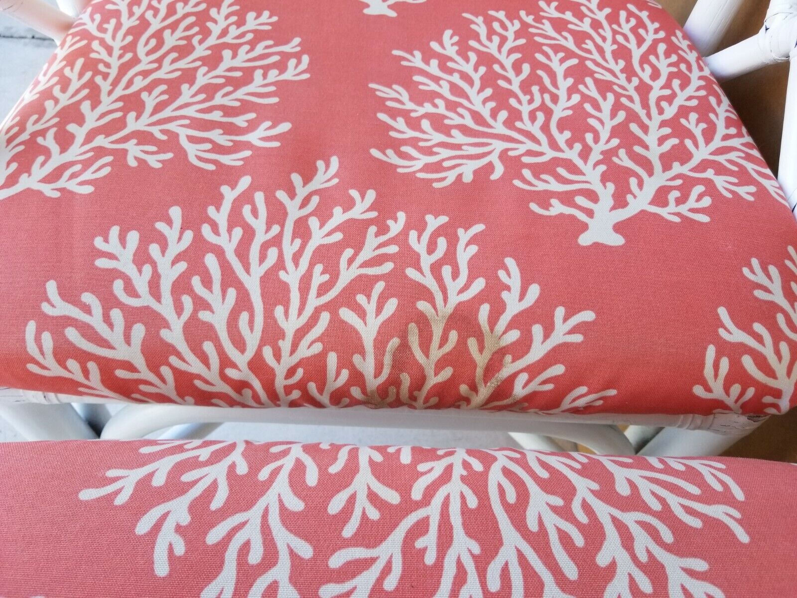 Sturdy and structurally sound with some minor nicks/scratches to paint possible. One cushion has a stain which may or may not come out but cushions pop out for easy DIY or Custom upholstery.