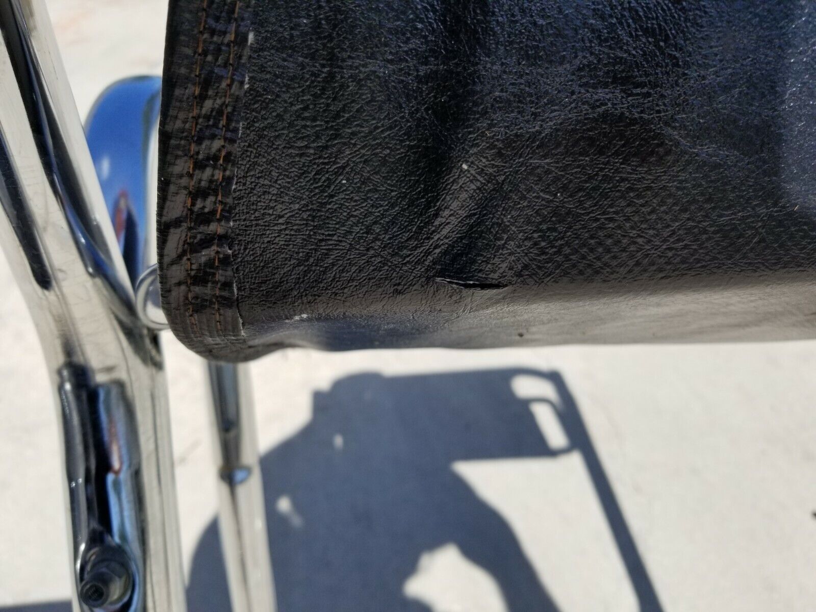 Structurally sound and sturdy. Sling support has some small tears and there is a small spot of rust on 1 foot as shown.