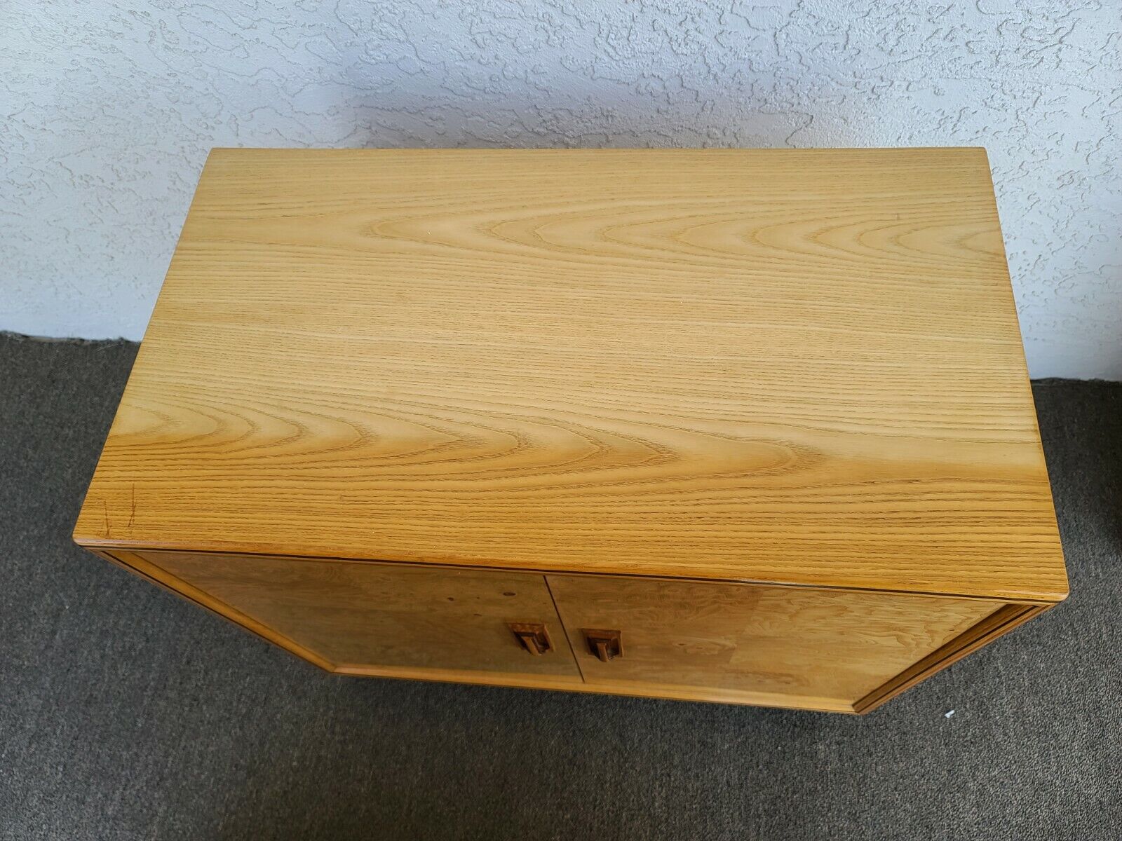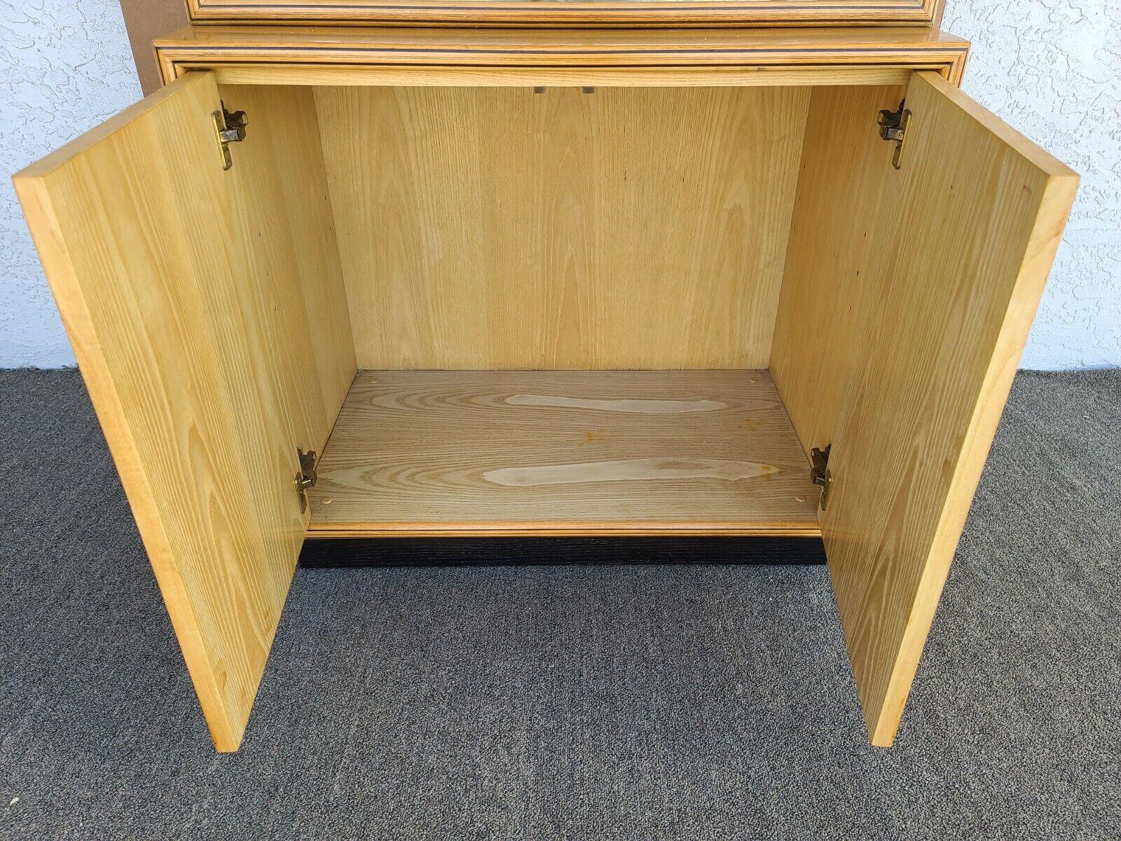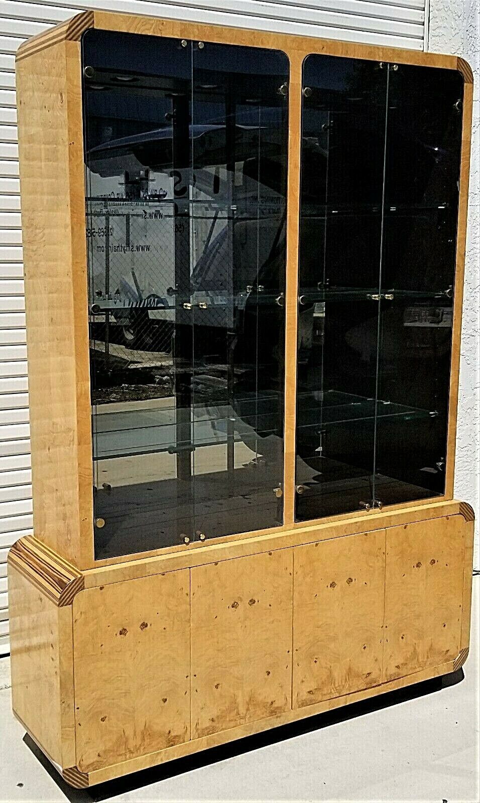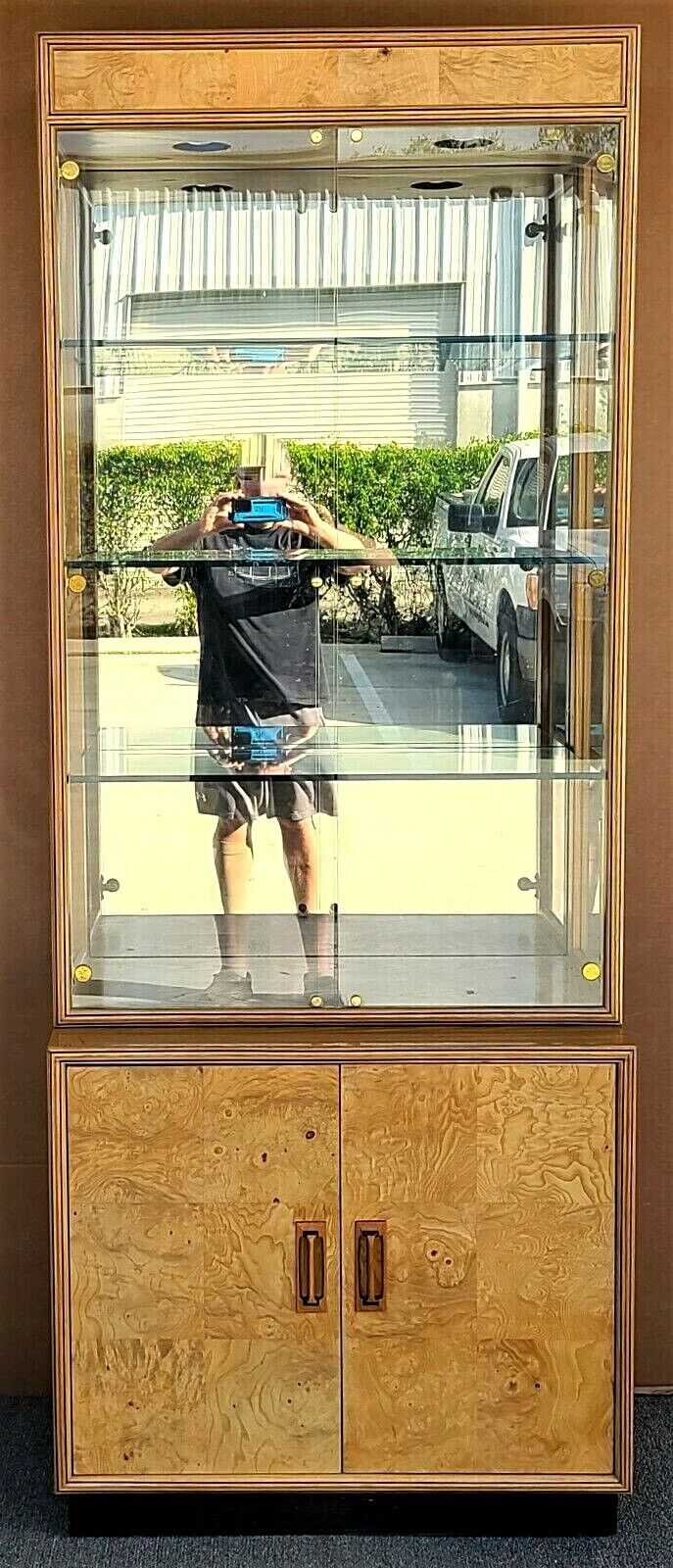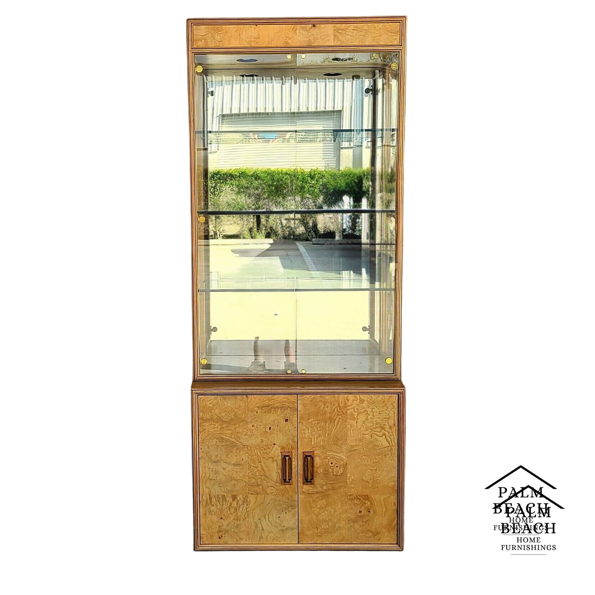 2 Piece 70's Milo Baughman Style HENREDON Scene Two Olive Burl Display Cabinet Case