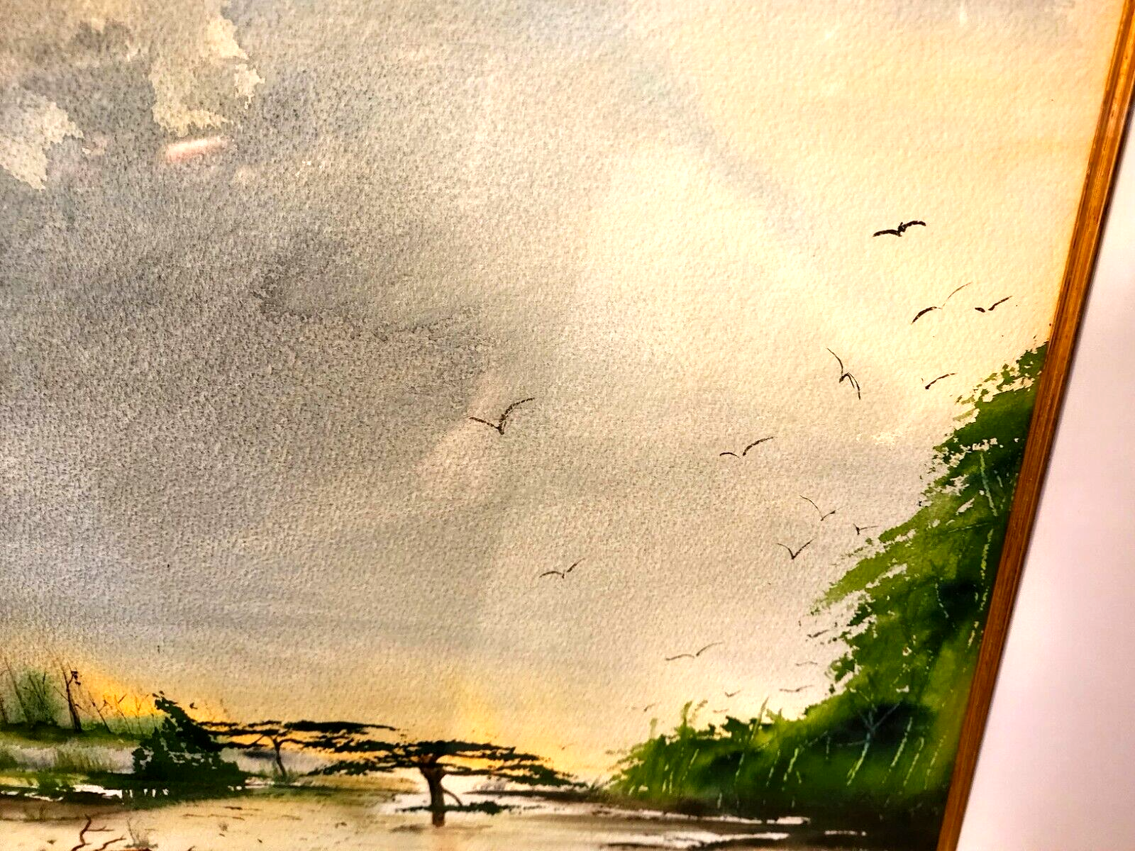 The painting and wood frame with glass are in very good condition with no notable damage. The photos are an important part of the item description and condition so please use the zoom feature to view them closely.