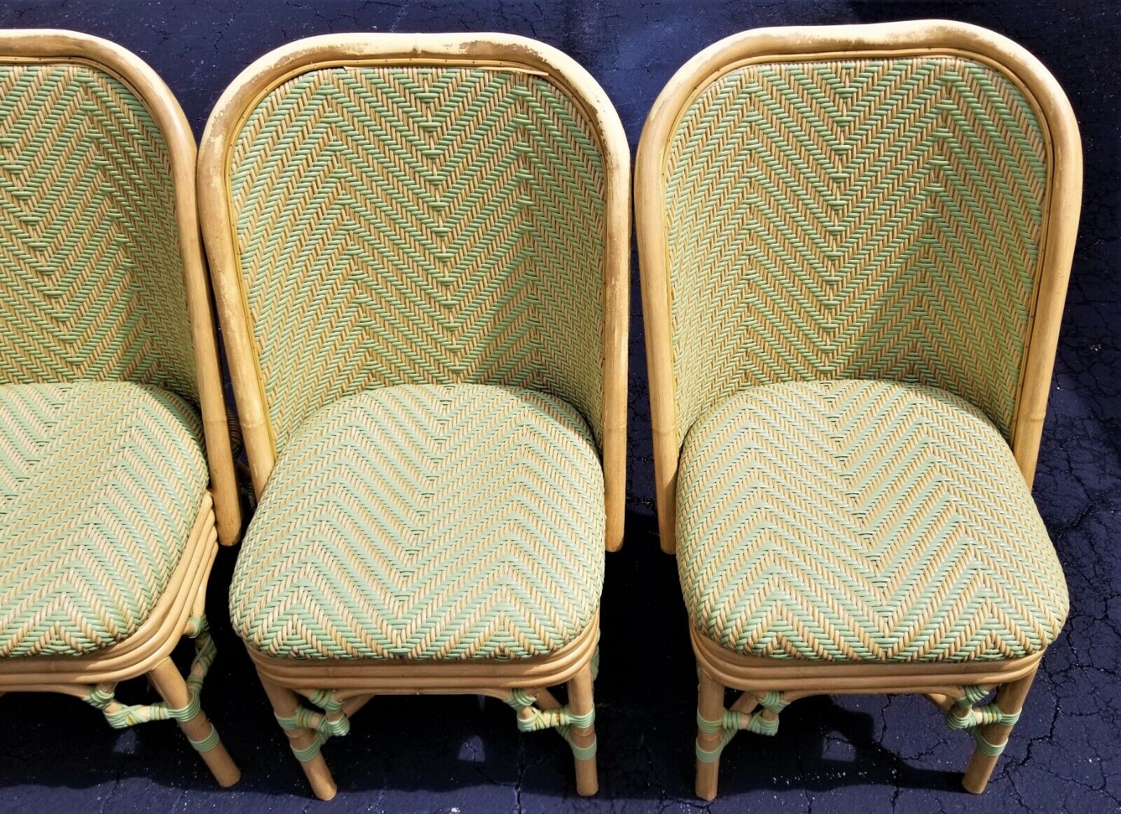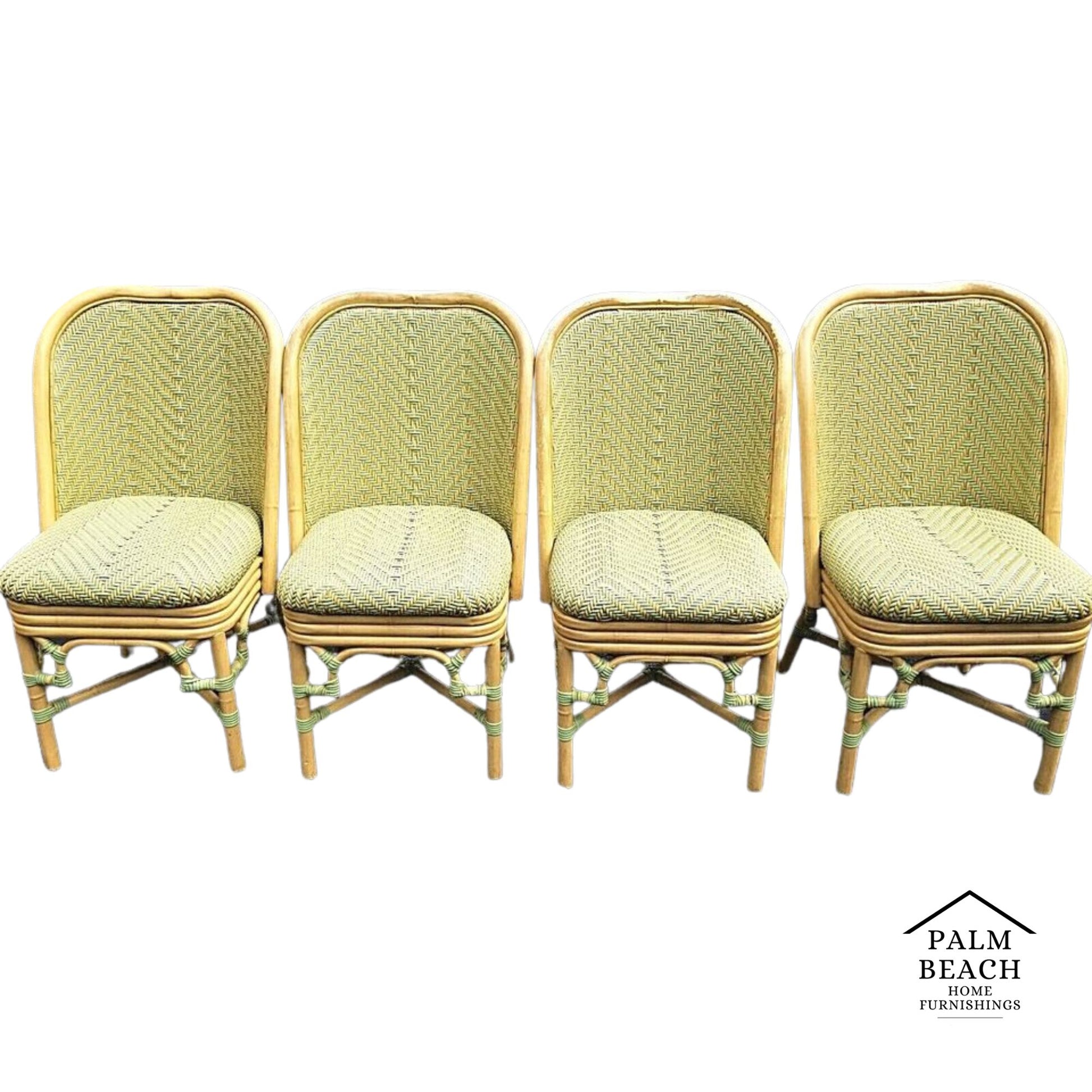 Set of (4) LANE VENTURE FINE FURNITURE PE Rattan + Faux Bamboo Aluminum Outdoor Dining Chairs