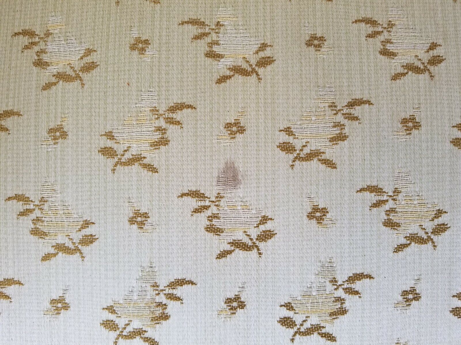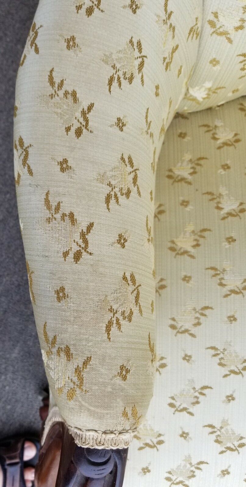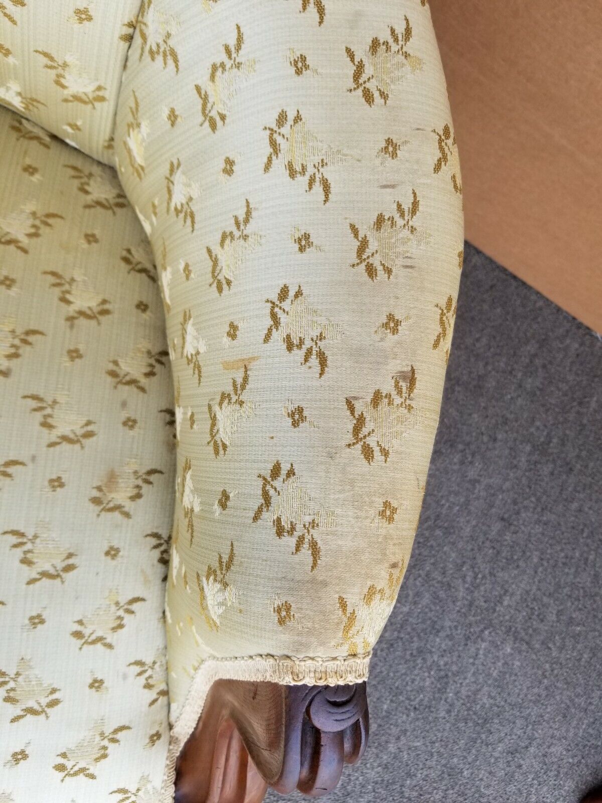 Fabric has a small stain on seat and some soiling on the arms as shown.