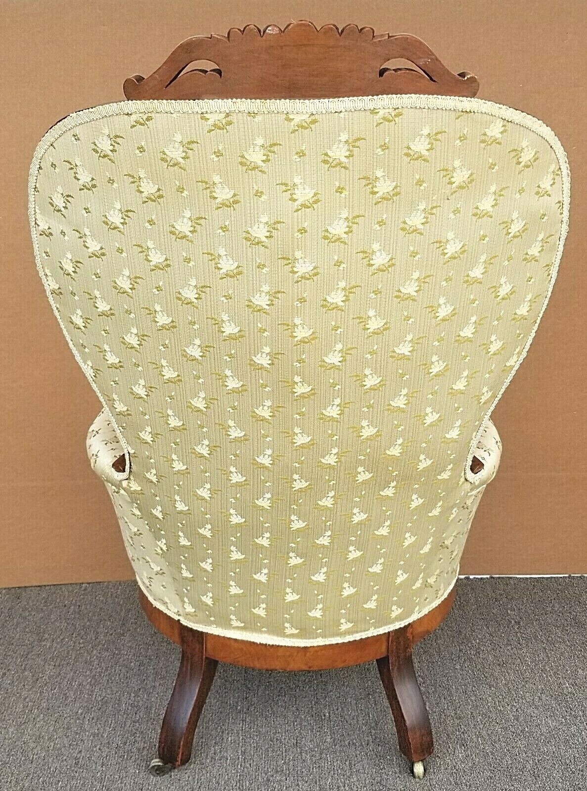 Antique 1800's Victorian Balloon Back Parlor Carved Walnut Armchair