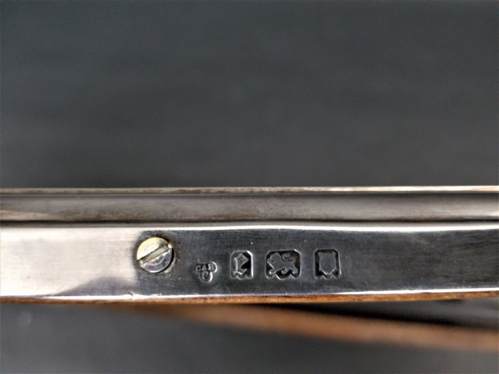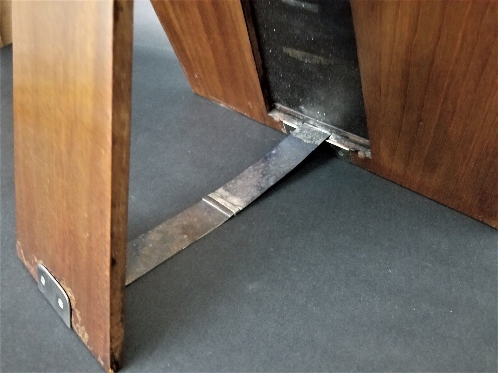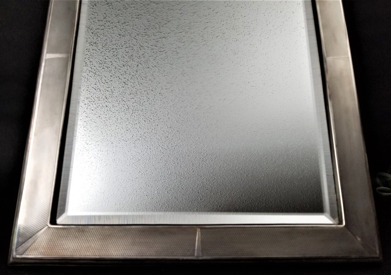 In good antique condition with a tiny scratch and a few small spots of light discoloration under glass. The many many things that look like spots on the mirror are from the reflection of the ceiling. There is a screw missing on the top edge. We have not attempted to polish it and all silver items may arrive more tarnished than they appear in the photo.