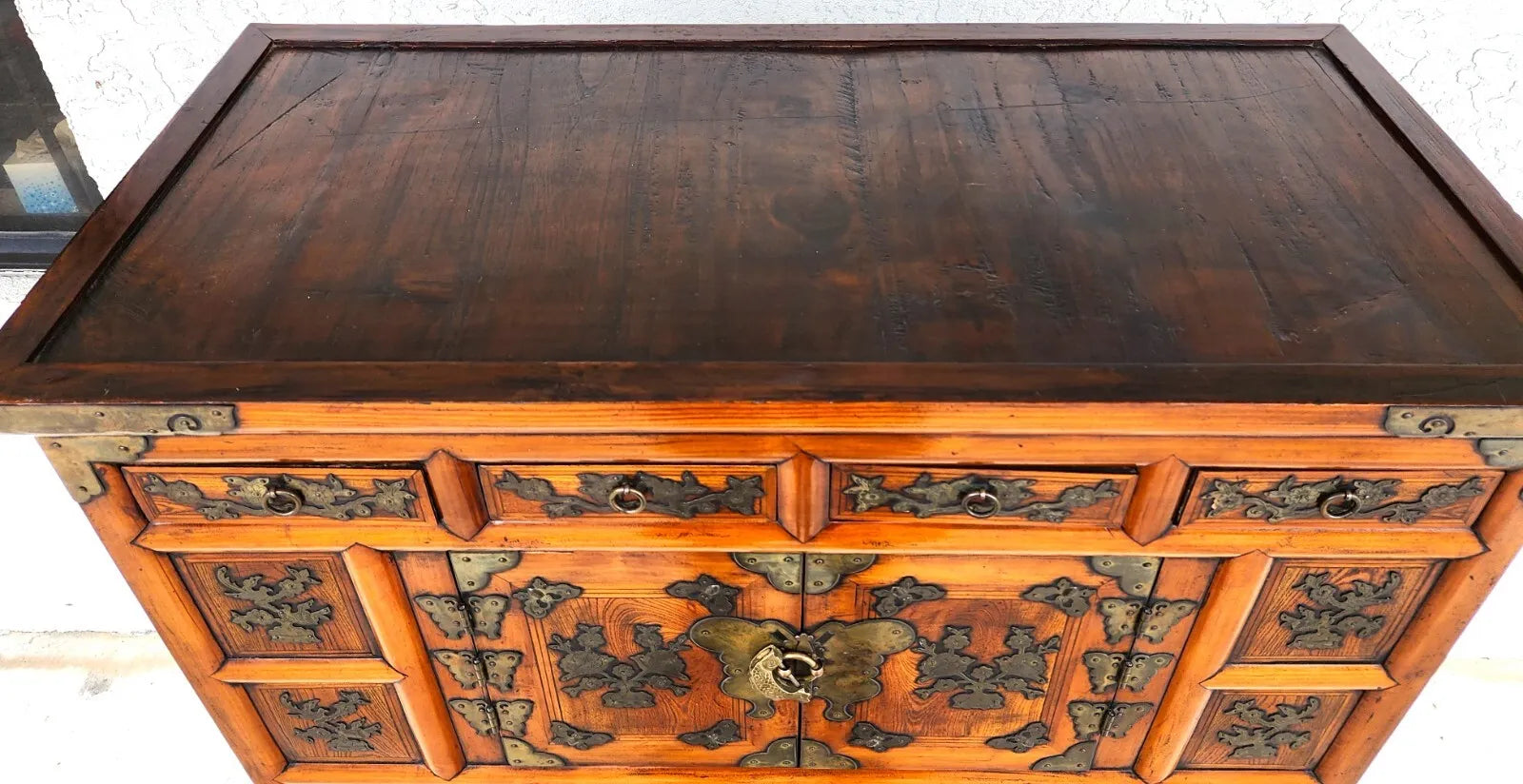 Antique Korean Elm & Brass Bound Bandaji Nong Tansu Scholars Chest Wedding Cabinet