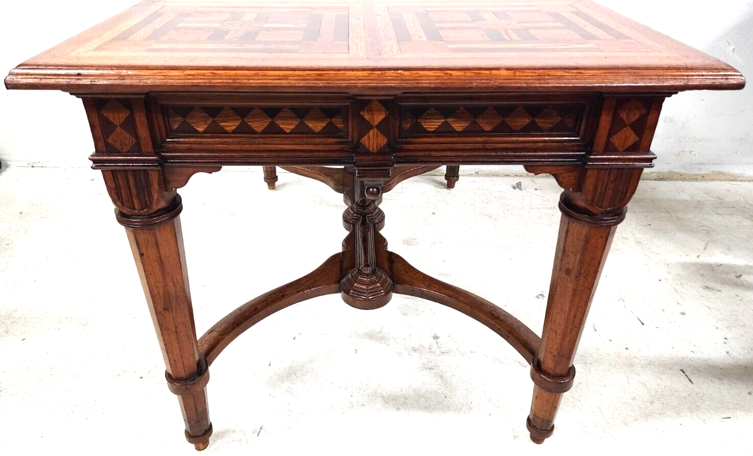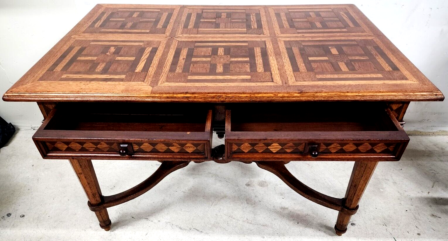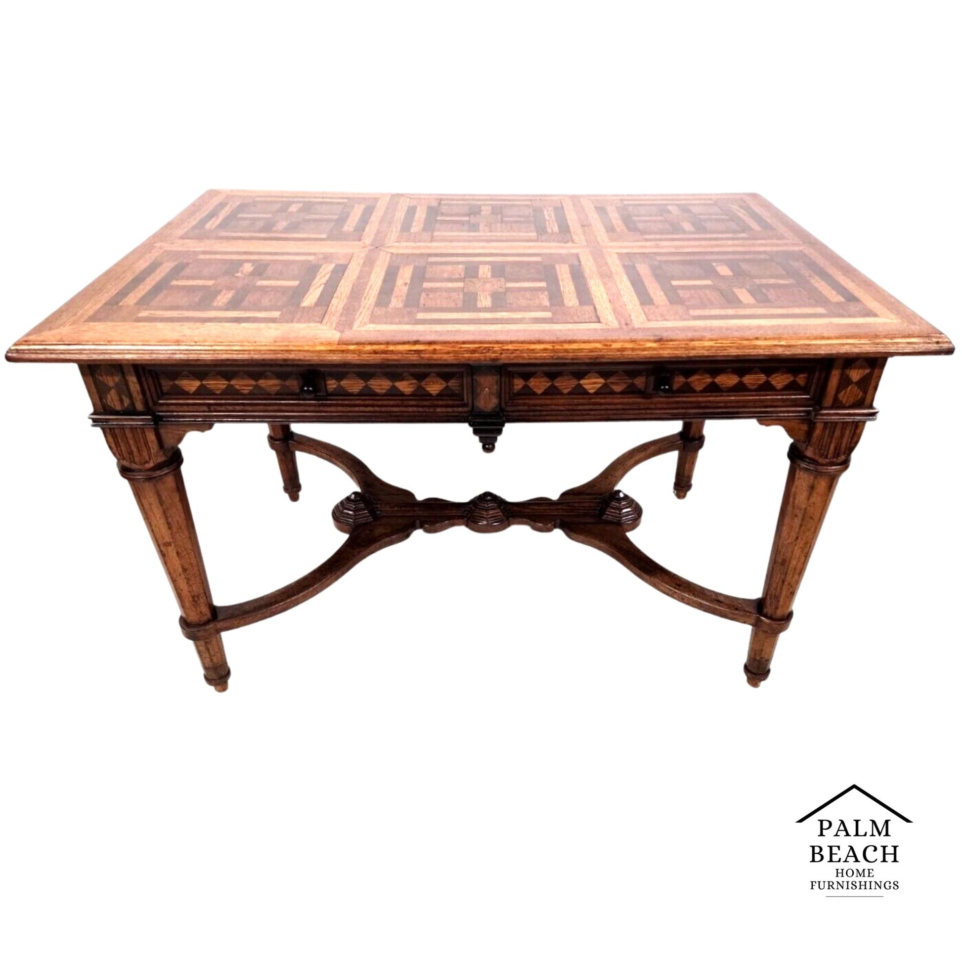 Antique Library Dining Table English 4 Drawer w Glass Top