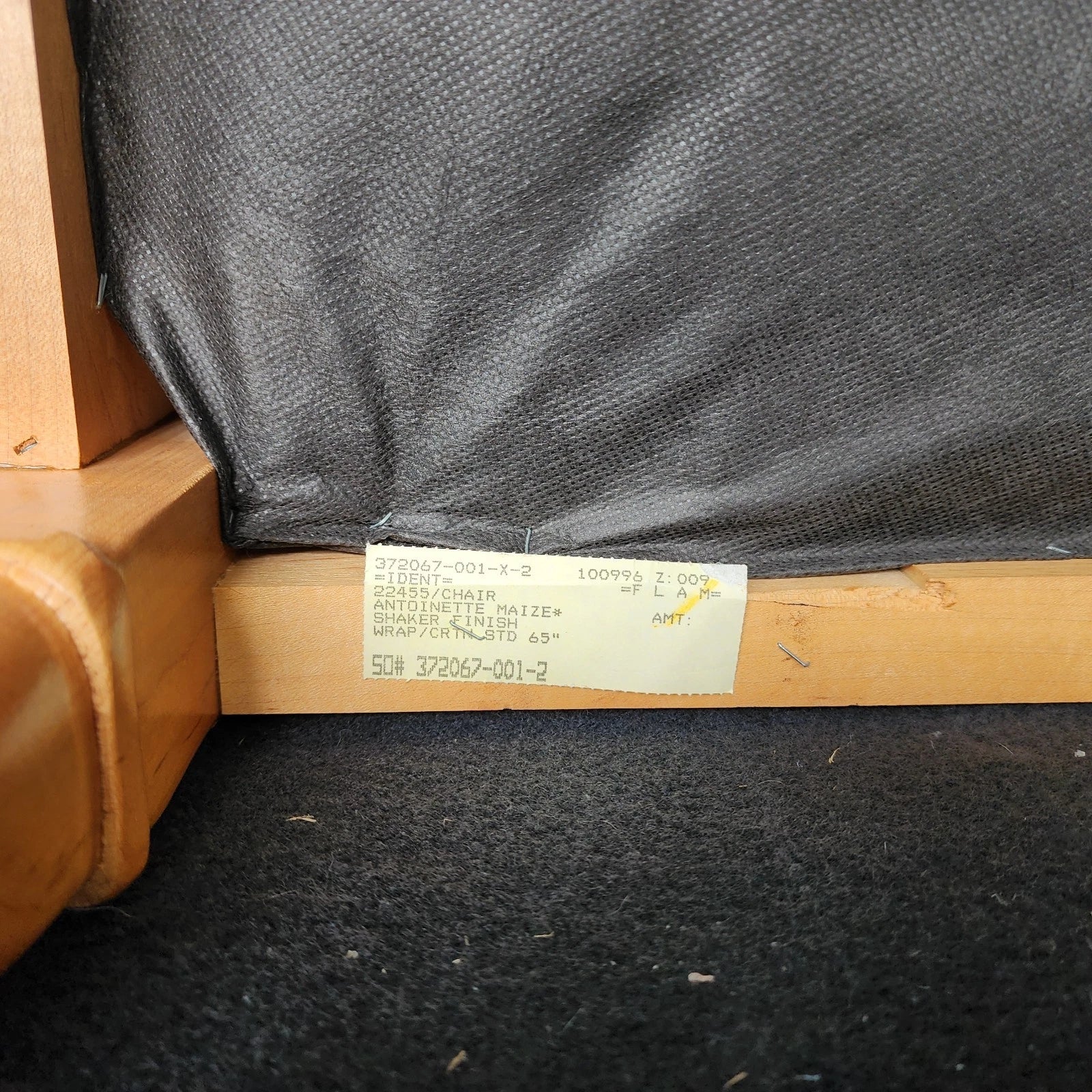In good, structurally sound, and sturdy condition with spotless fabric EXCEPT there are 2 small stains on the underside of 1 seat cushion as shown in the last to photos. Small imperfection on the back frame of 1 chair also as shown in photo 19. The photos and video are an important part of the item description and condition so please use the zoom feature to view them closely.