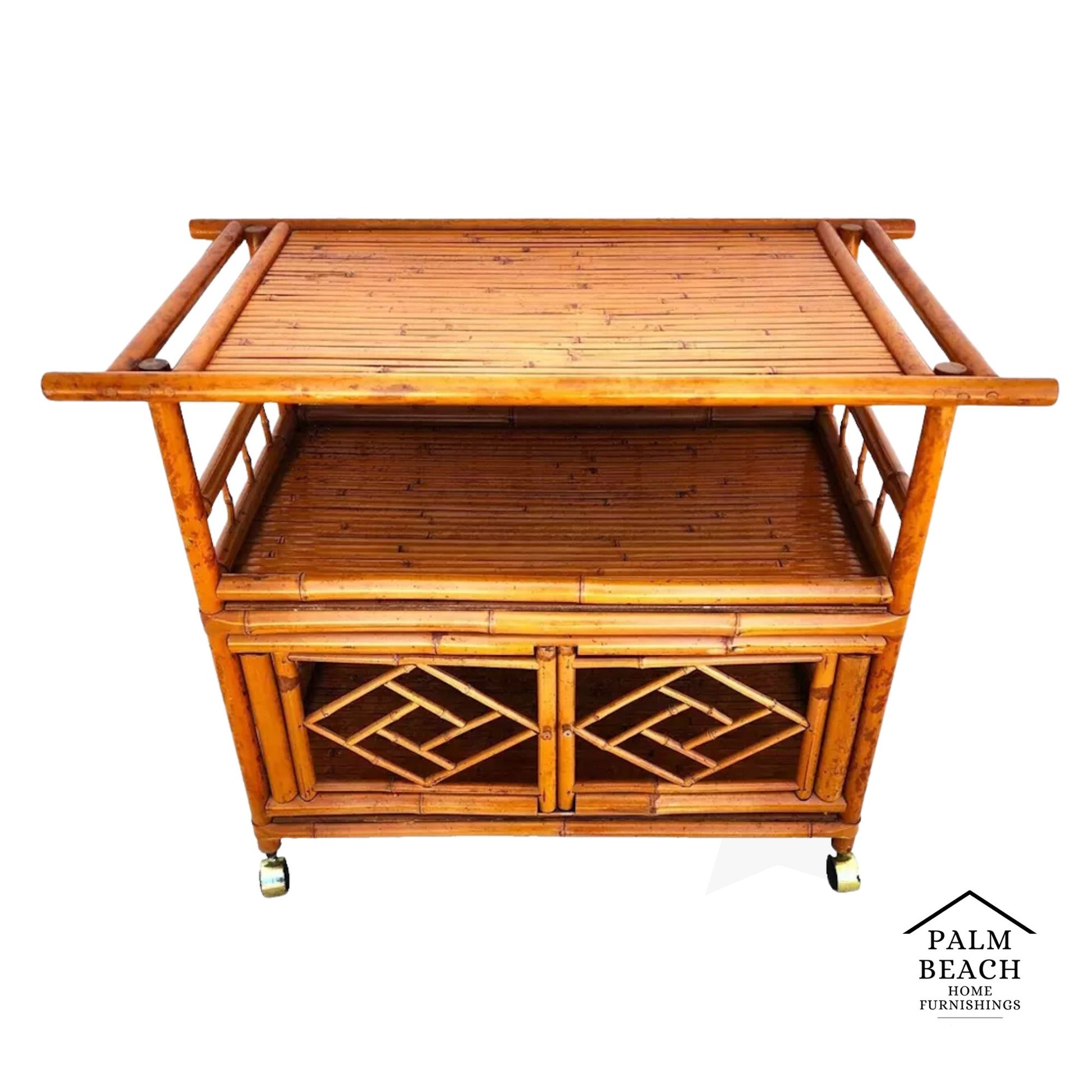 Asian Tiger Bamboo Bar Serving Cart Pagoda Vinatge