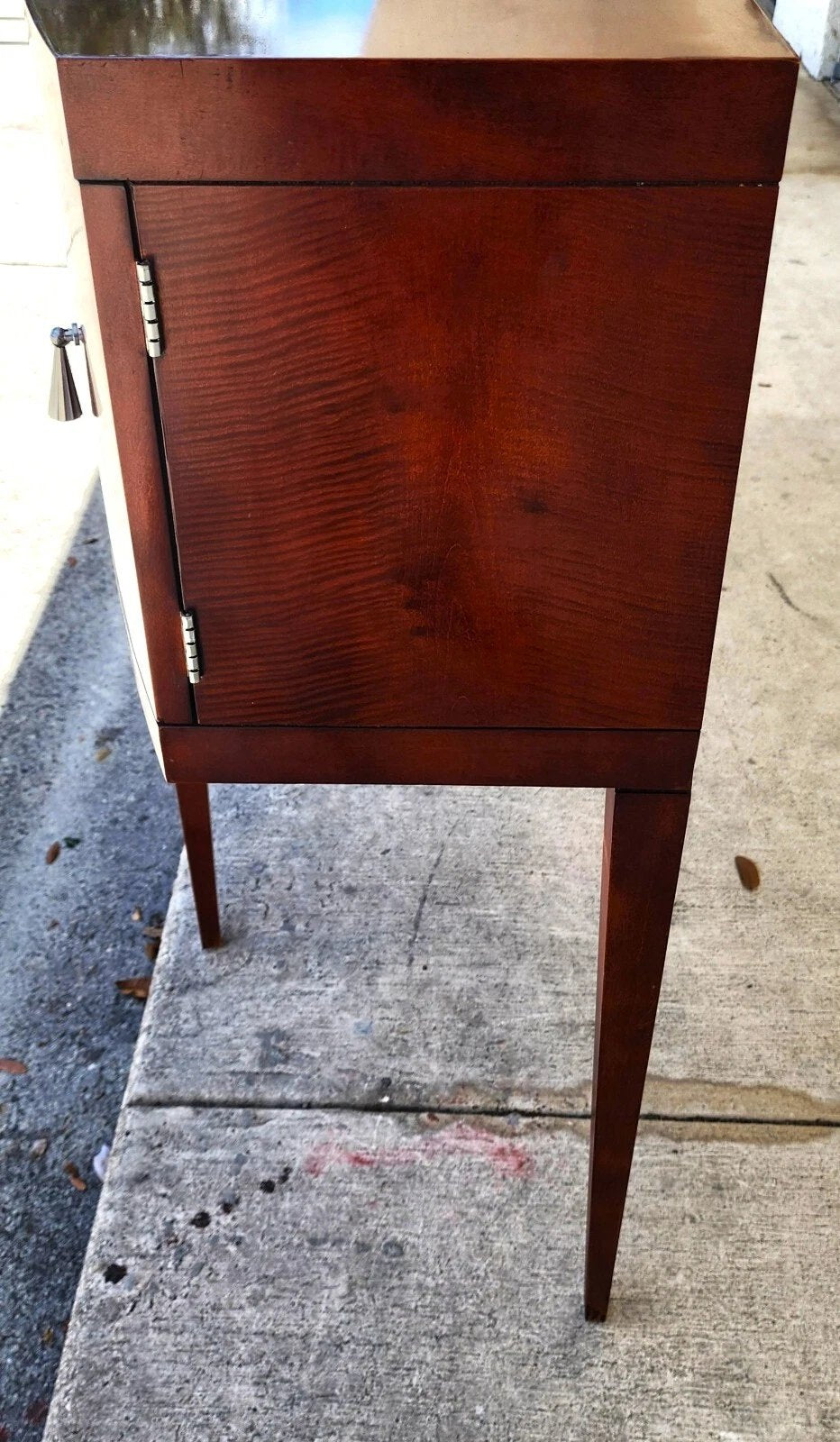 In good, structurally sound, and sturdy condition. The darker areas in the photos are reflections. There are some deep scratches on the middle top (see last photo and video) and some scratches where the handles swung back and forth (see photos 15 & 16 and video). The photos and video are an important part of the item description and condition so please use the zoom feature to view them closely.