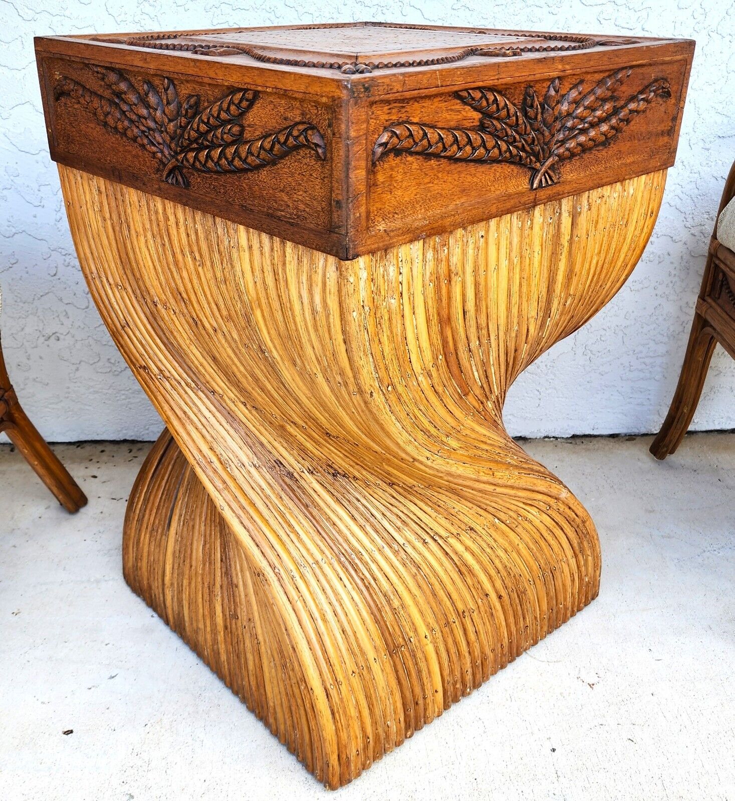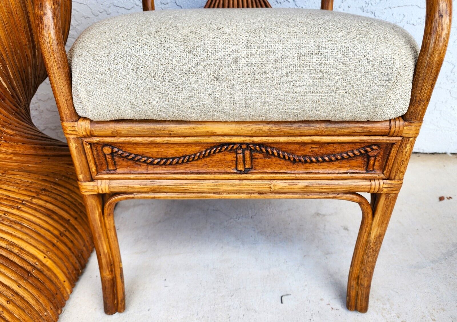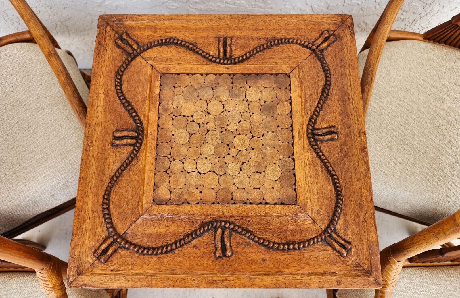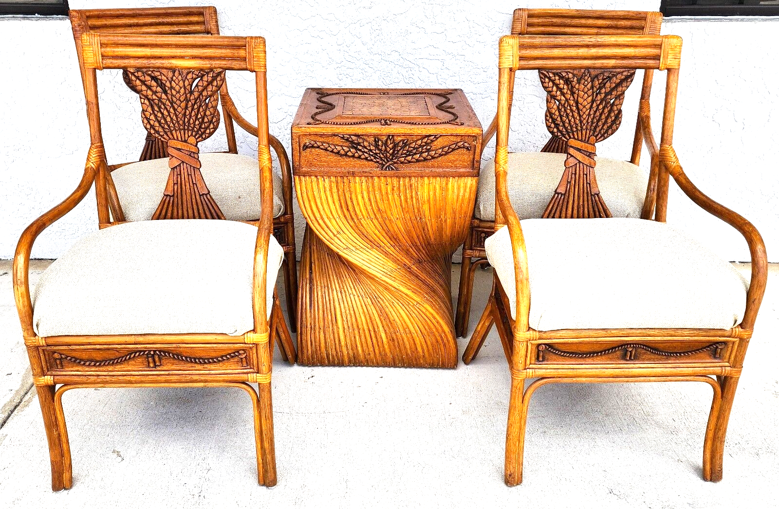 5 Piece Vintage Bamboo Rattan Wheat Back Dining Armchairs & Table Base