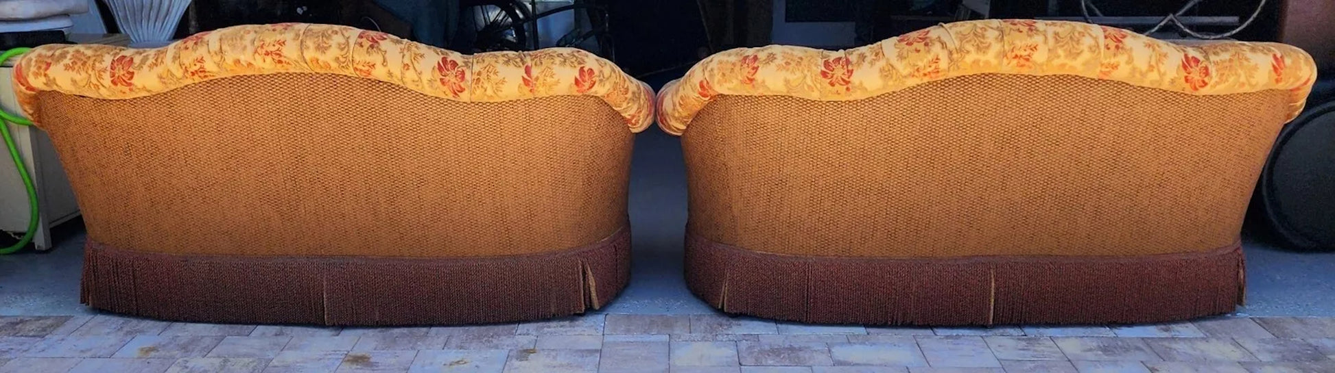 Both are in very good, structurally sound and sturdy condition. No stains, soiling, smells, or other notable damage EXCEPT 1 (reversible) seat cushion has a spot of wear on it's underside as shown in the last photo. The photos are an important part of the item description and condition so please use the zoom feature to view them closely.