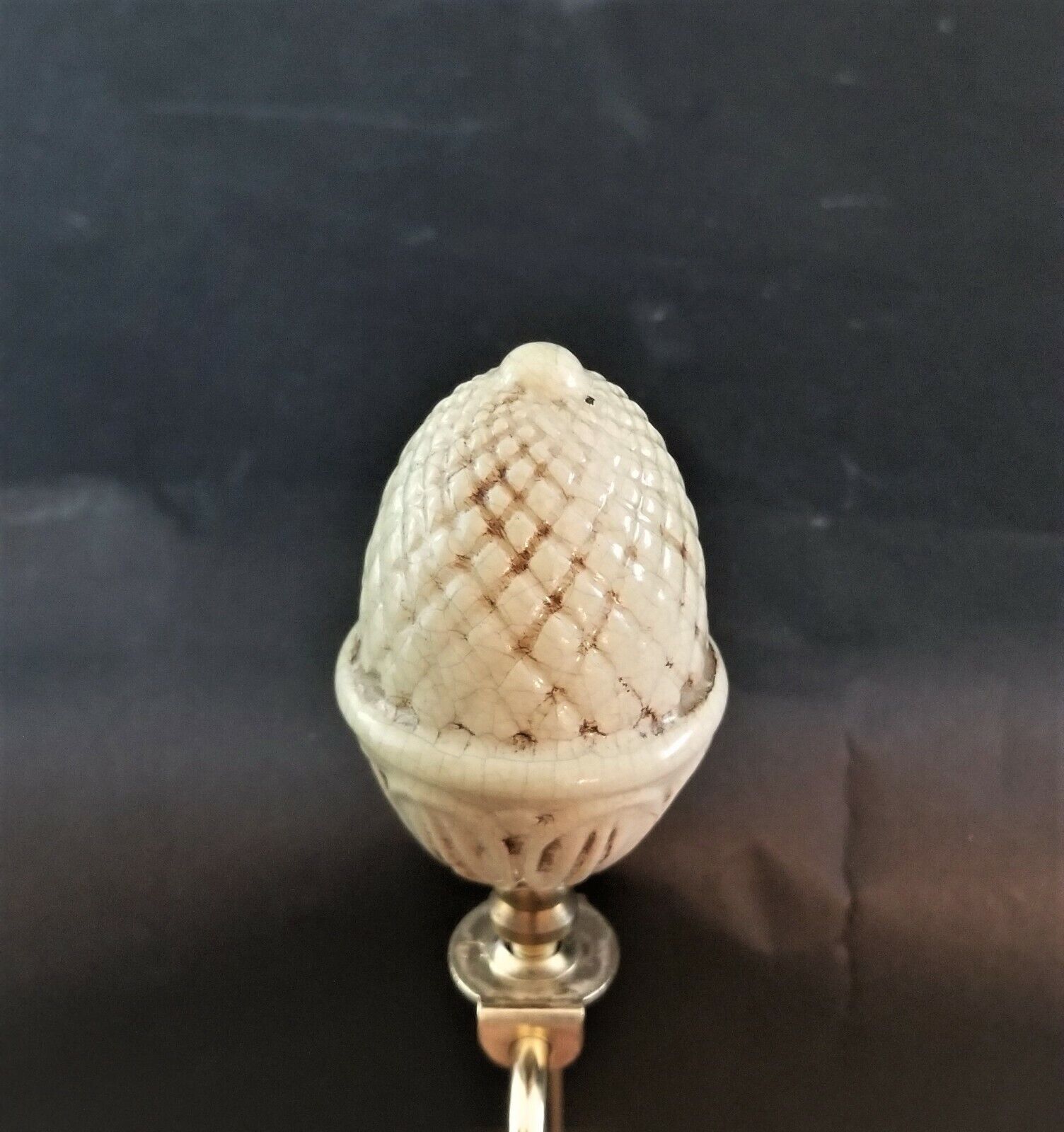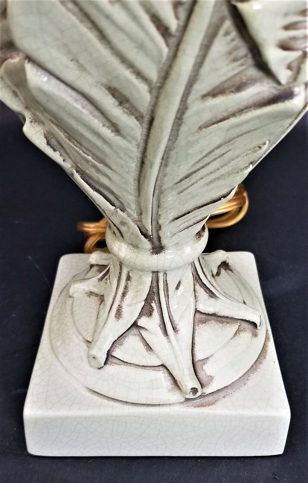 Unique BRADBURN GALLERY Mint Green Lamp with Palm Leaves and Crackle Finish and Matching Ceramic Acorn Finial