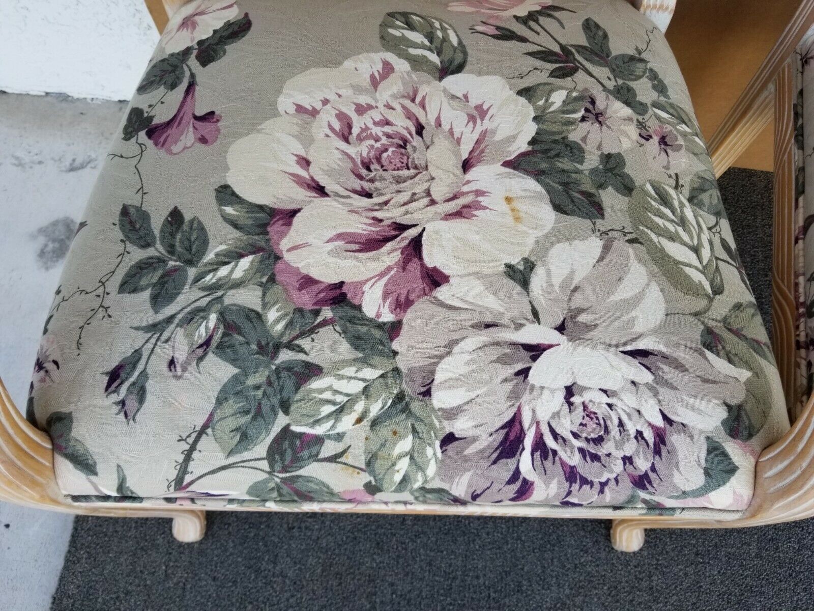 Carved Blonde Solid Wood Chintz Roses Dining Chairs - Set of 4