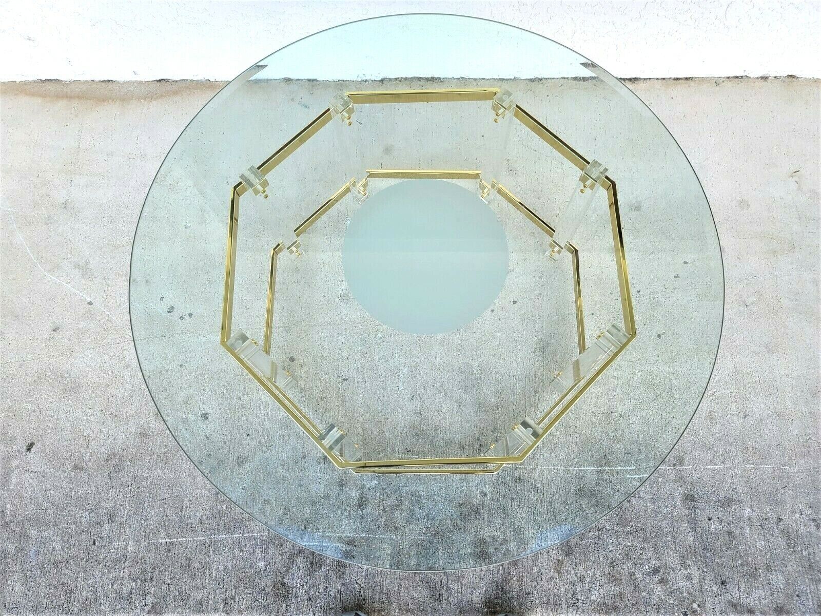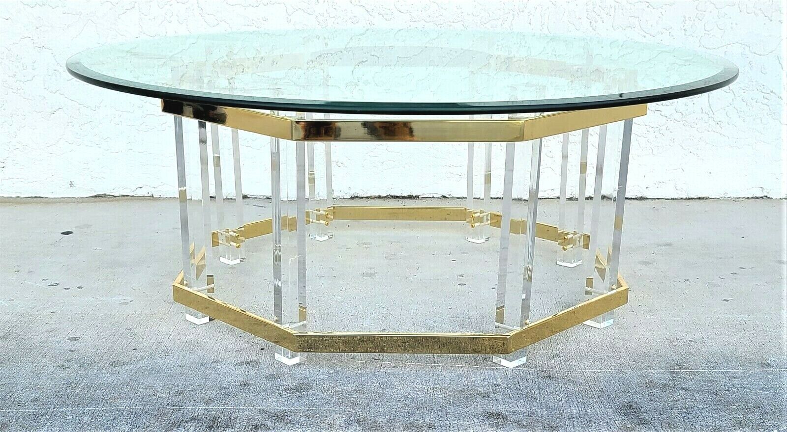 CHARLES HOLLIS JONES Mid Century Brass Lucite & Glass Octagonal Coffee Table