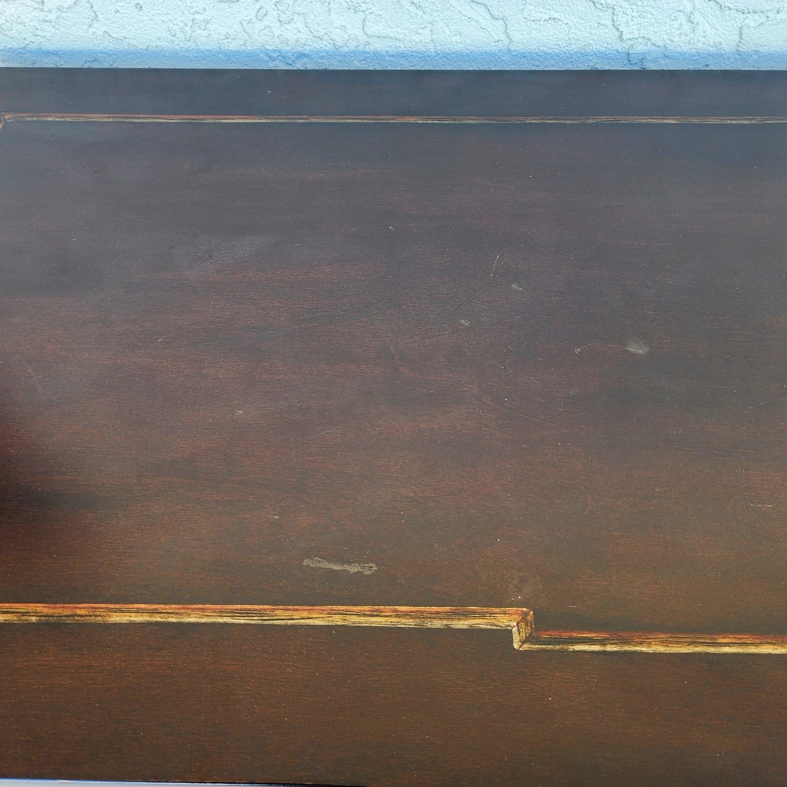 In good, structurally sound and sturdy condition with some imperfections on the top as shown in the photos and video. The photos and video are an important part of the item description and condition so please use the zoom feature to view them closely.