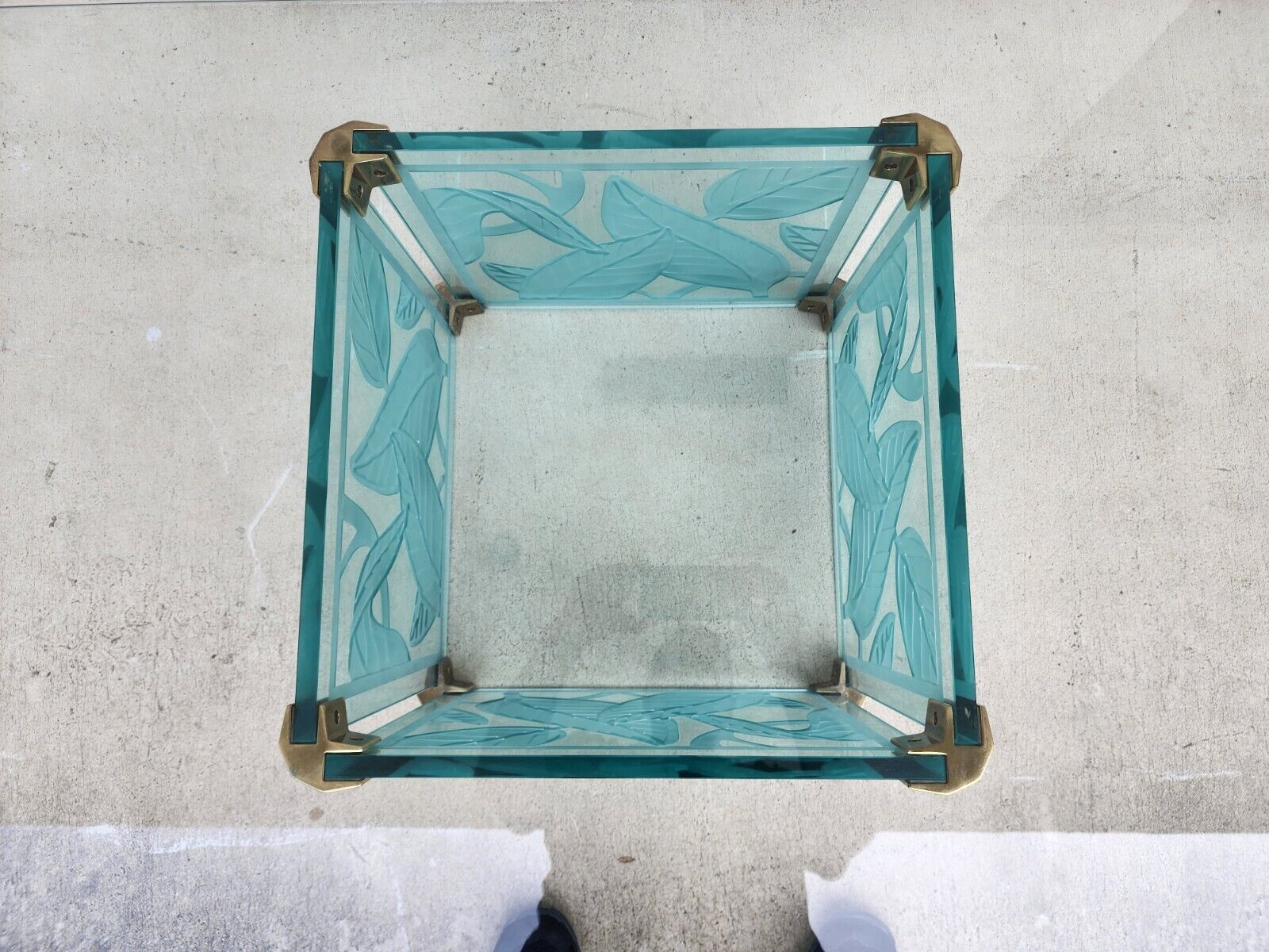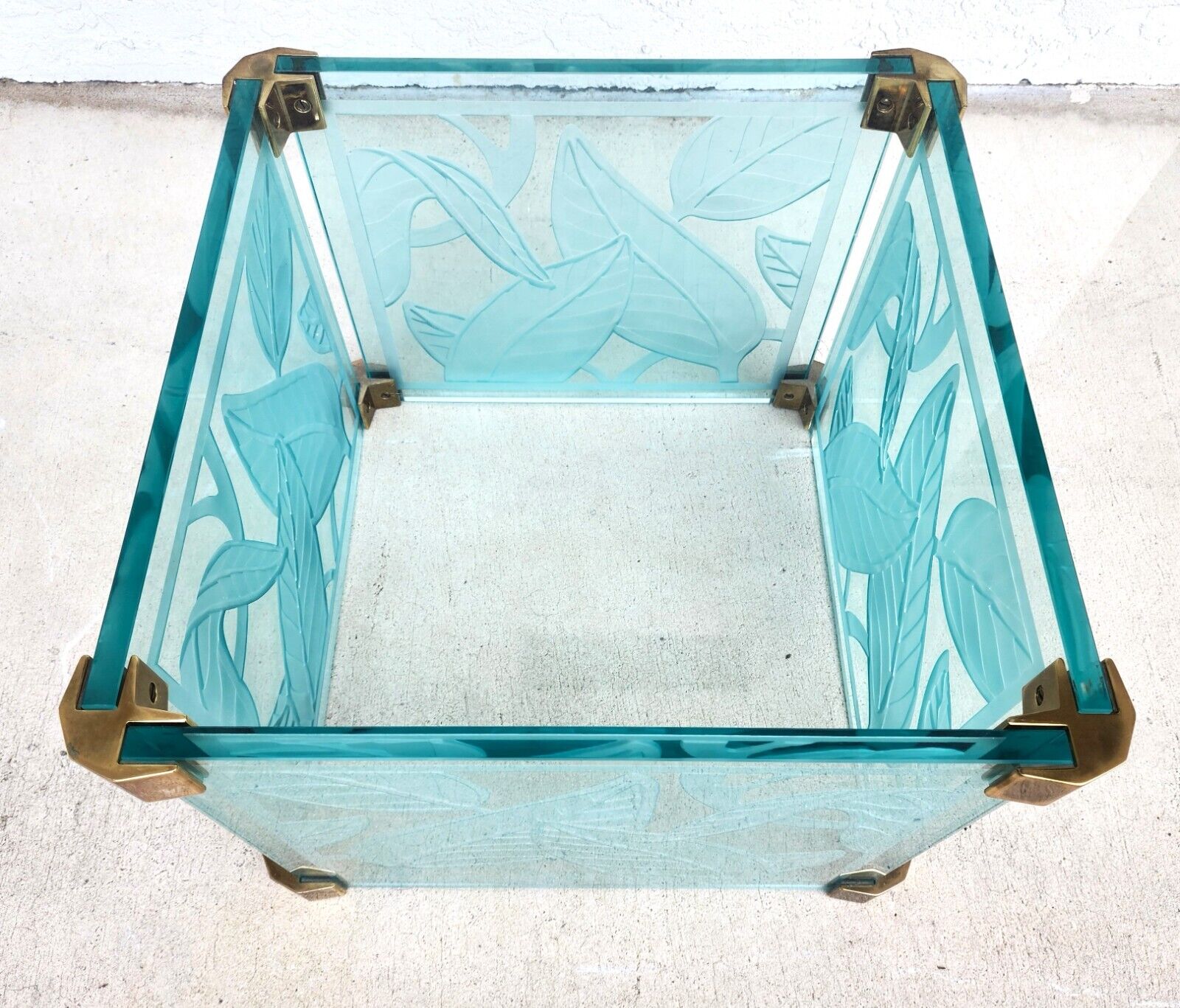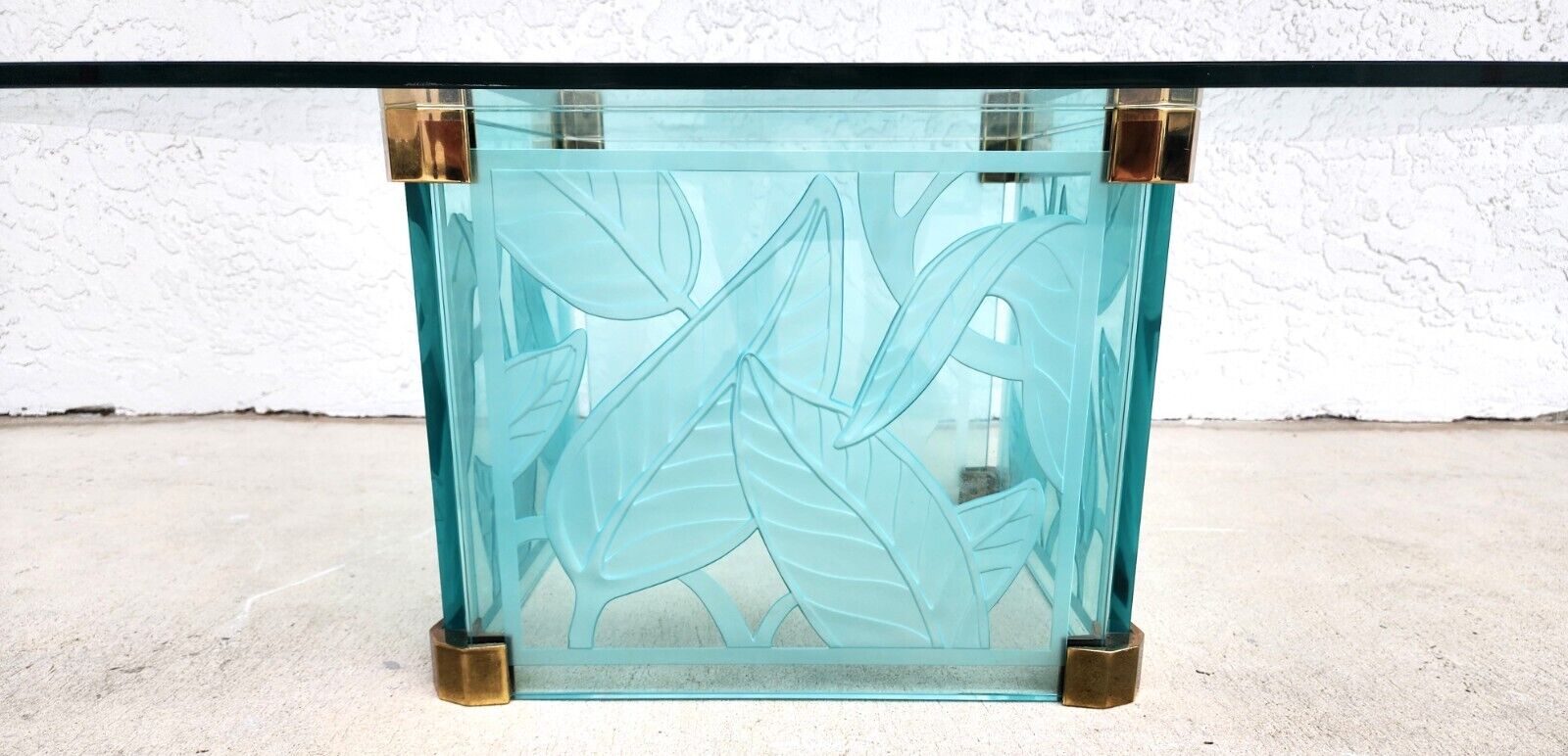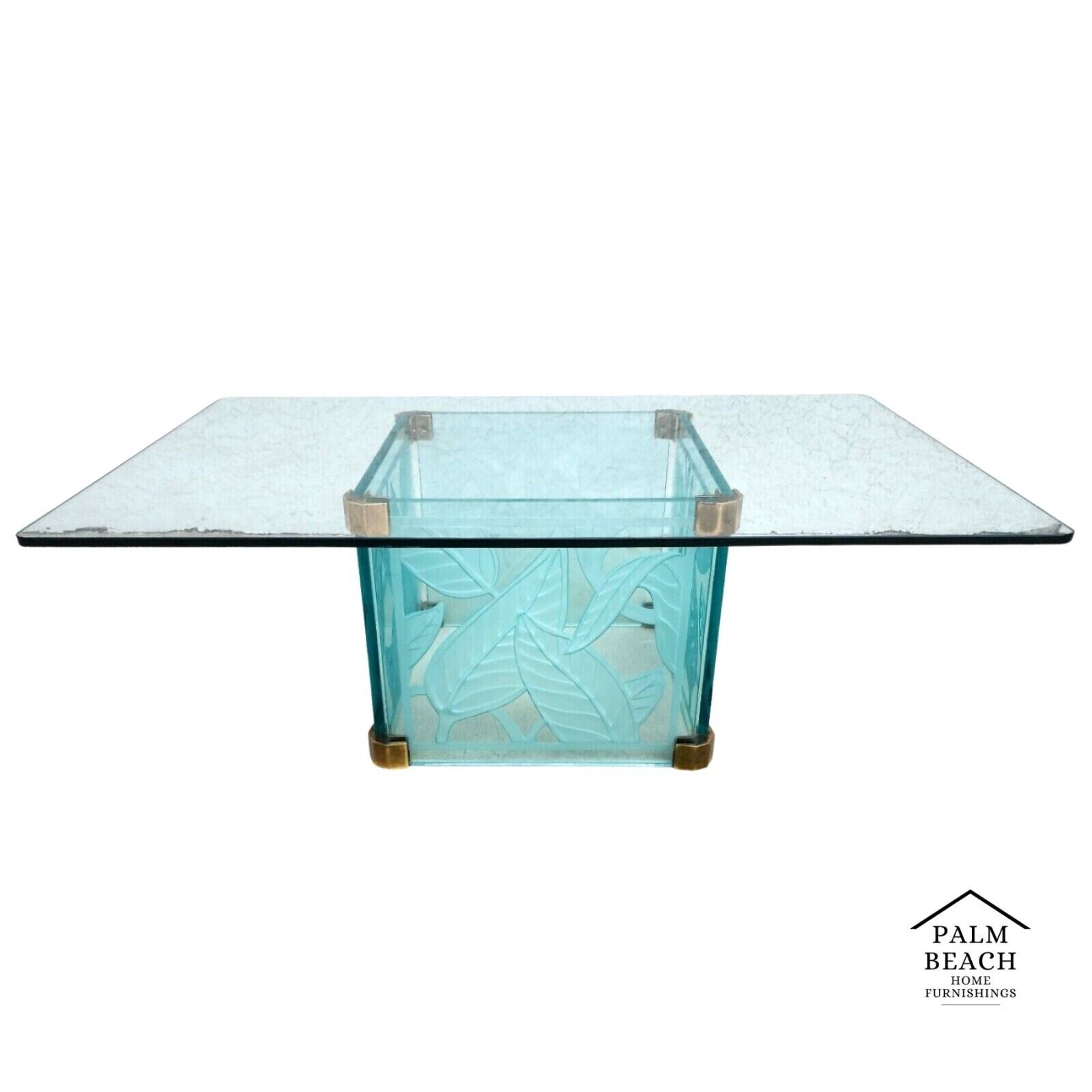 Highly Etched Glass Dennis Abbe Style Coastal Palm Beach Coffee Cocktail Table