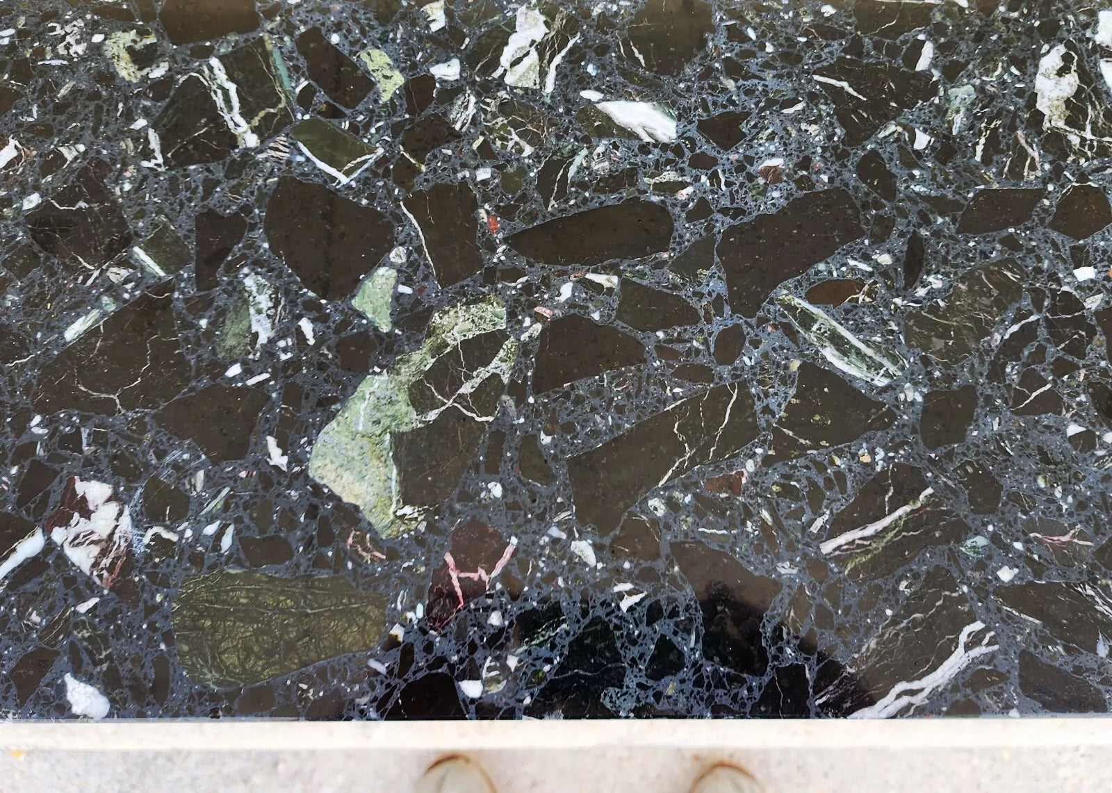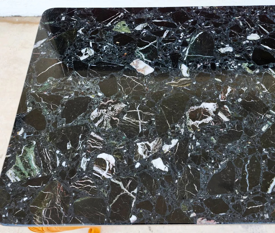 Fantabulous Black Beauty Granite and Carved Fruitwood Console Sofa Table