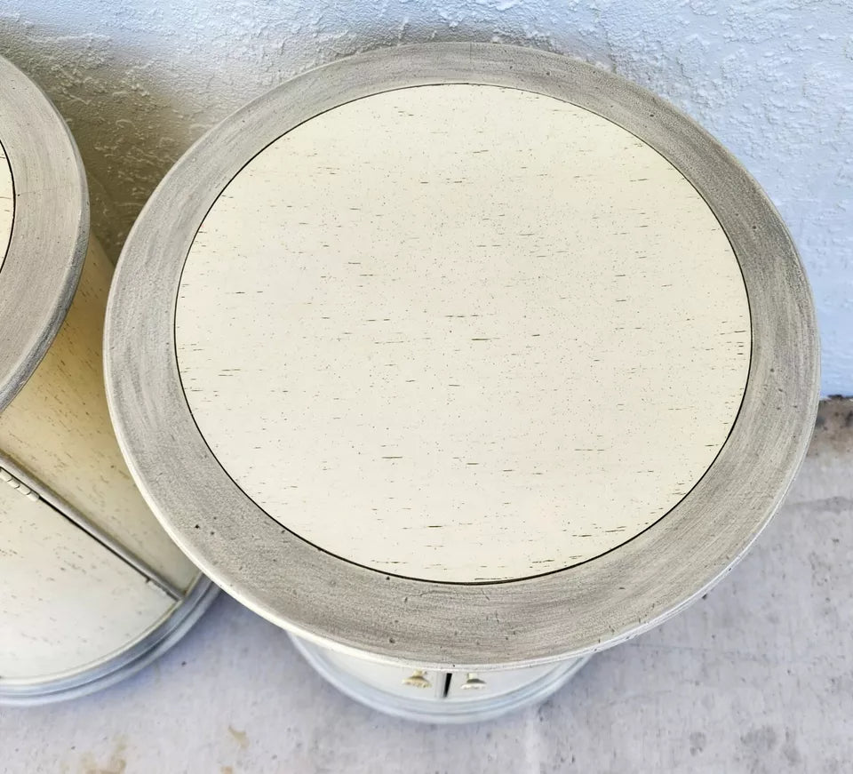 Pair of Vintage Designed Drum Bedside Side End Tables