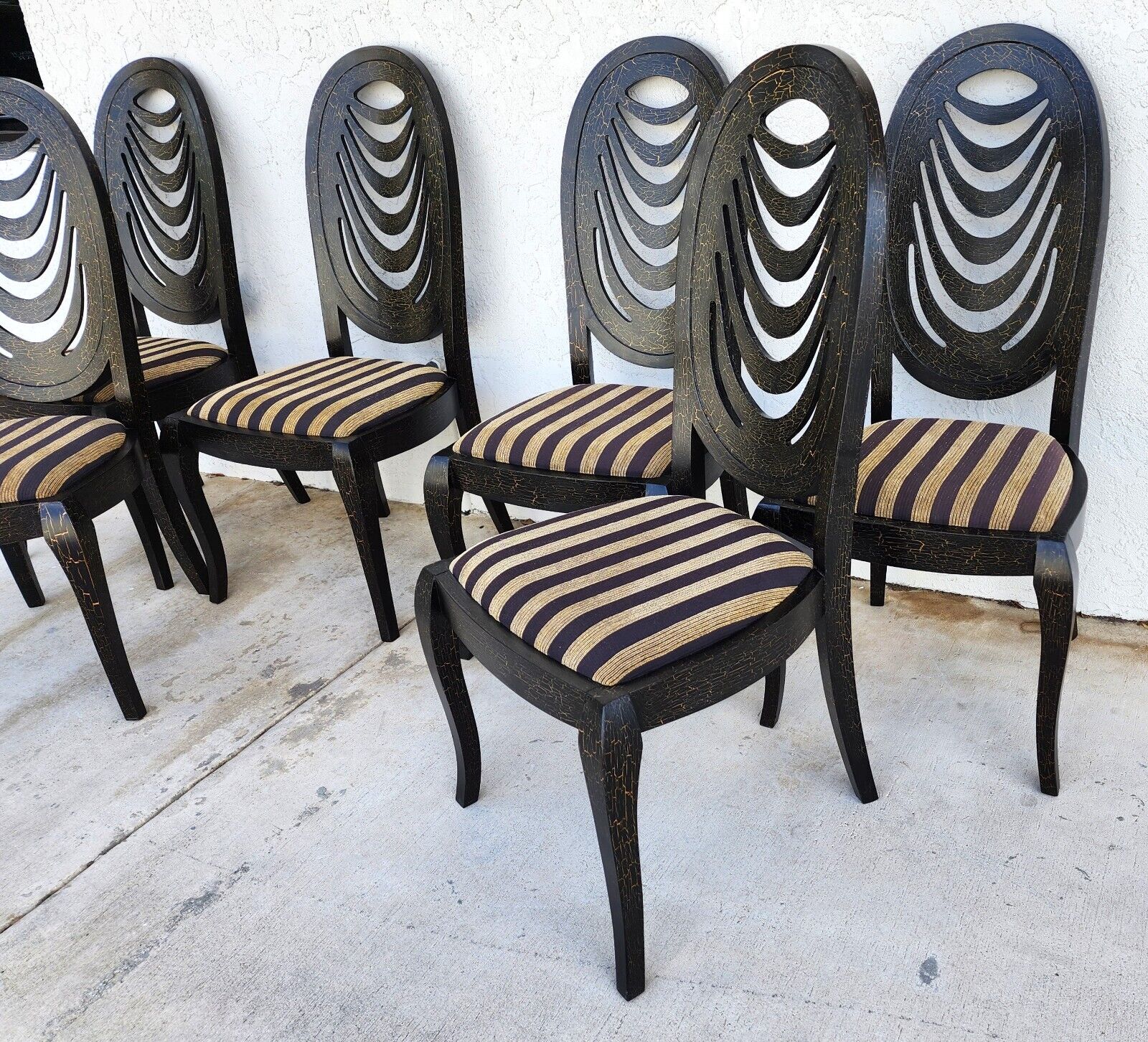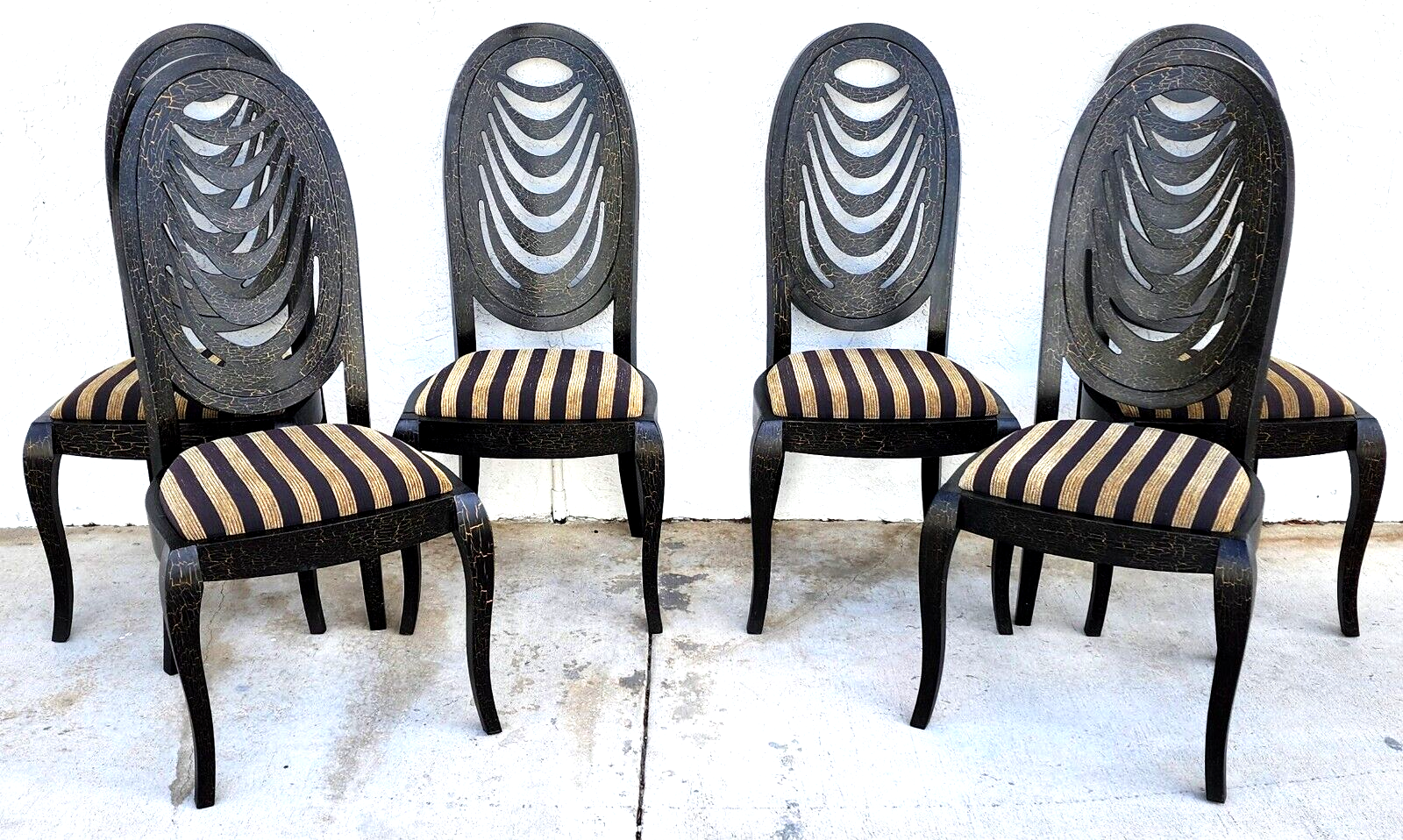 All chairs are in very good condition with no damage to the solid wood frames and no stains on the fabric. The photos are an important part of the item description and condition so please use the zoom feature to view them closely.