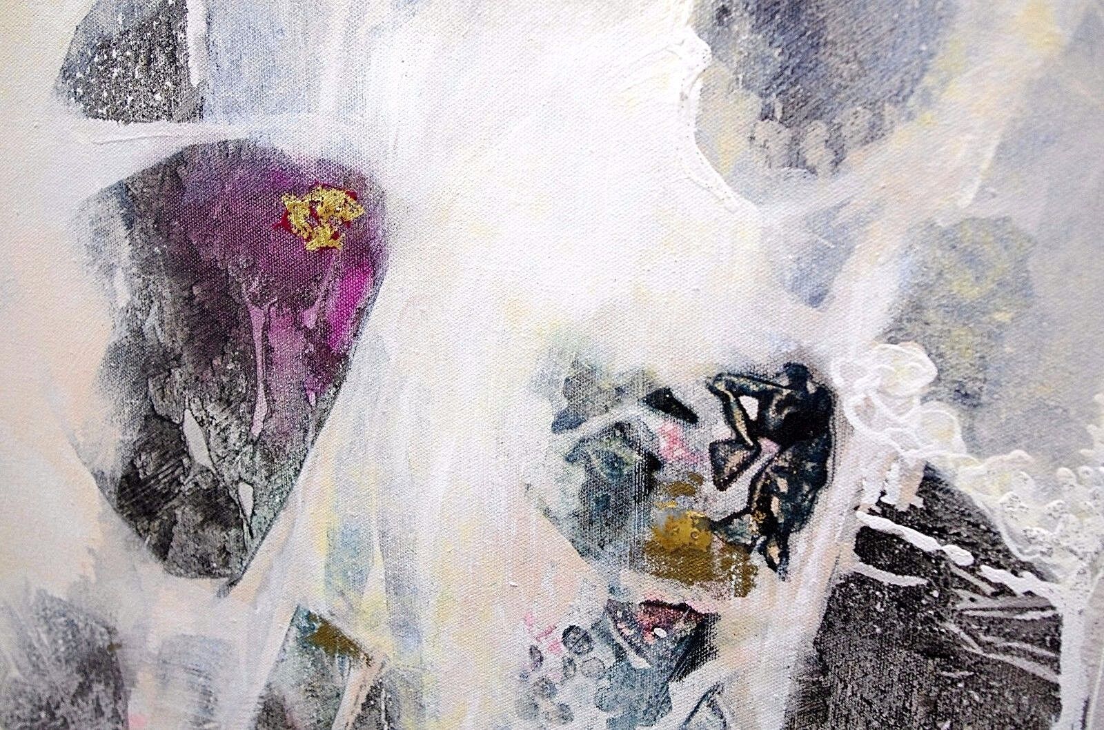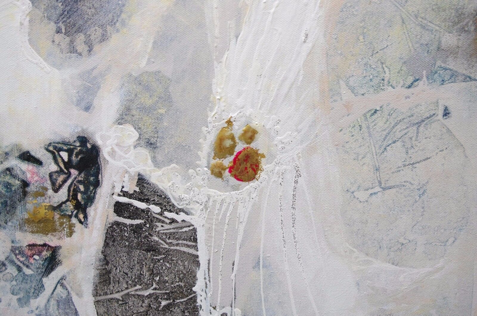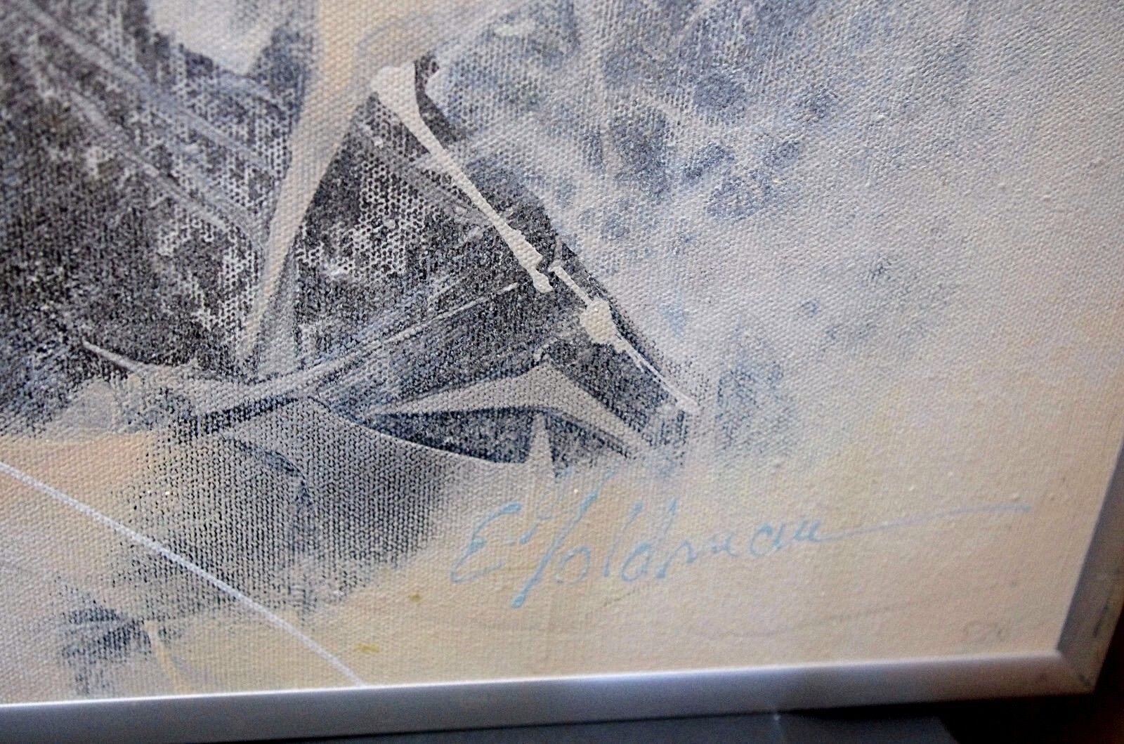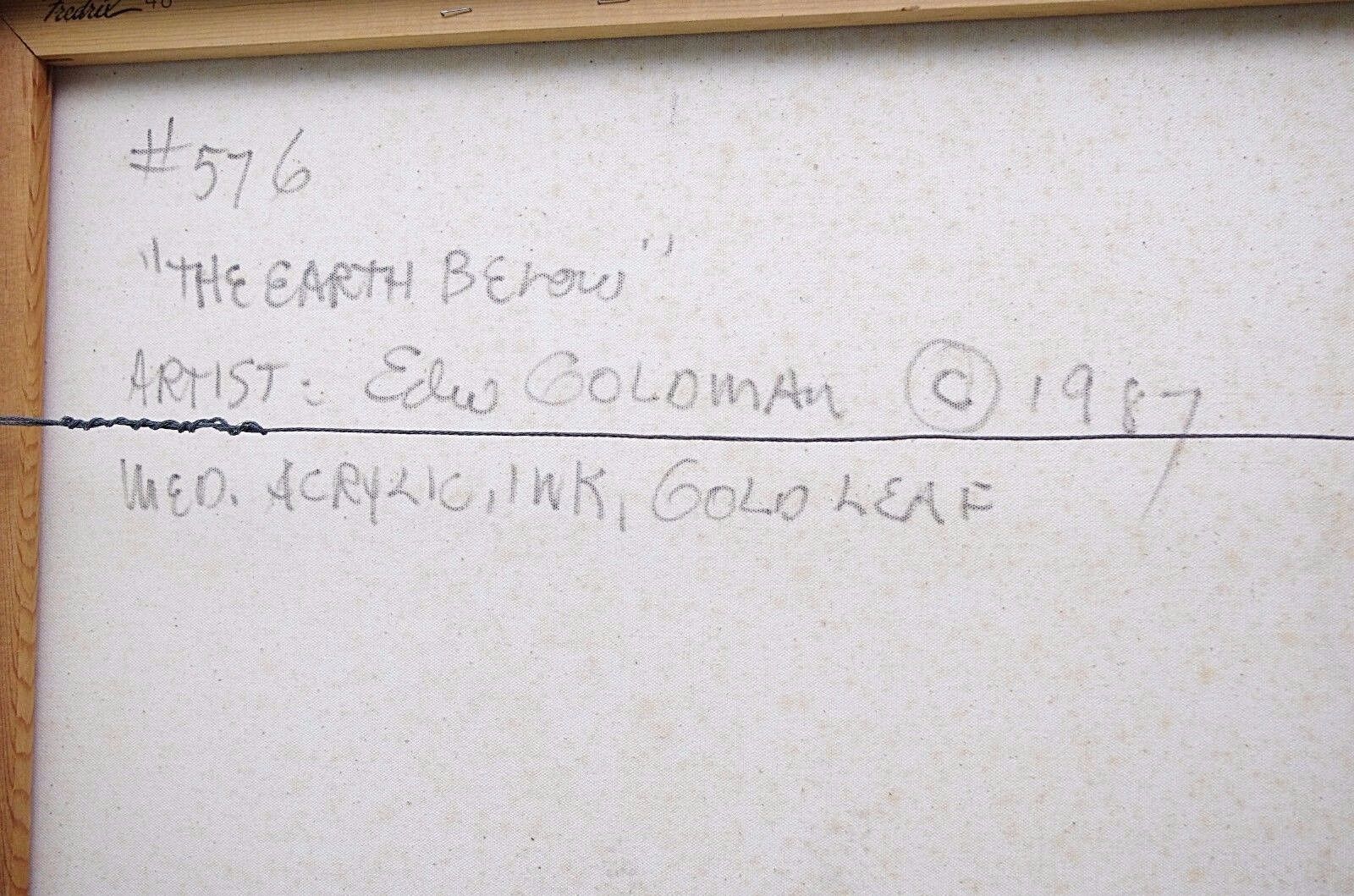 An 1987 Edward Goldman (1916-2006) Abstract Acrylic, Ink and Gold Leaf on Canvas Painting Signed