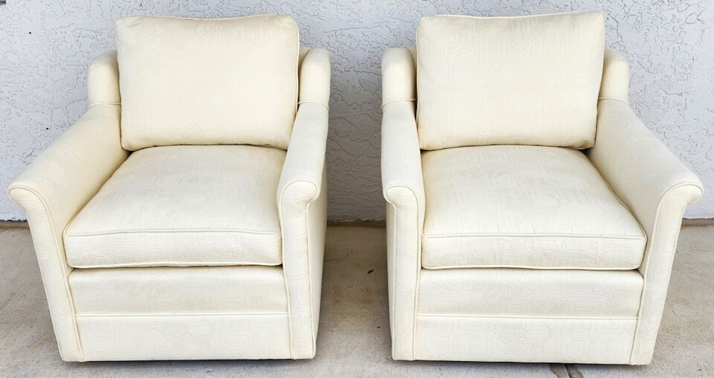 Pair of EJ Victor Style Lounge Club Chairs with Matching Throw Pillows