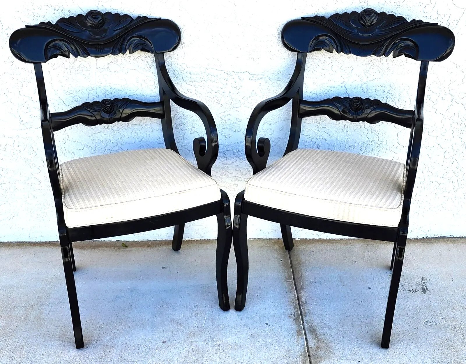 Pair of English Regency Scroll Arm Ebonized Dining Accent Chairs