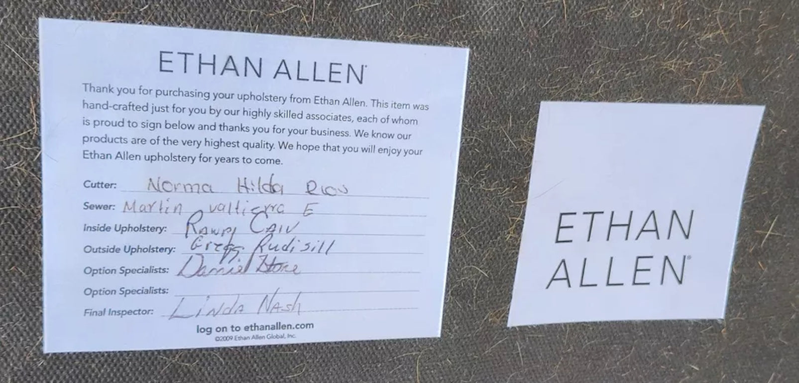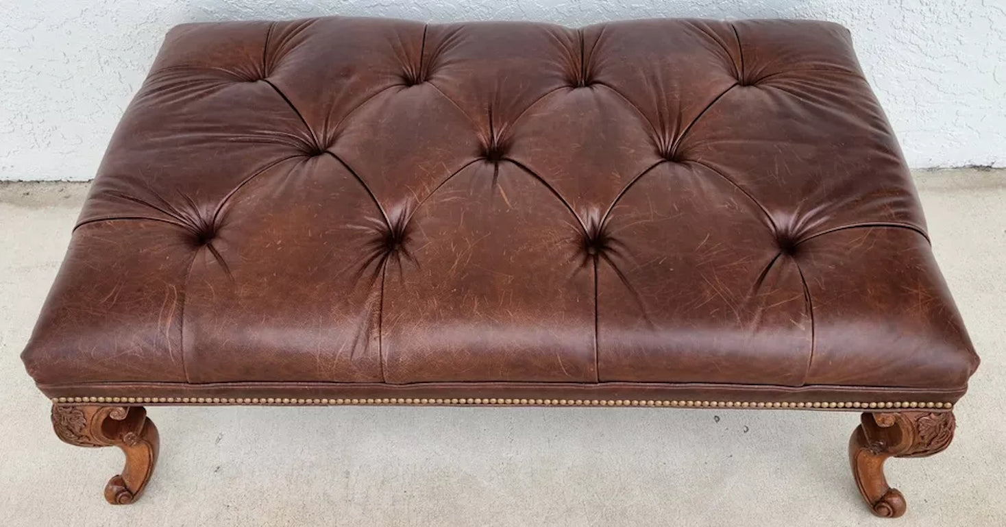 Vintage Ethan Allen English Chesterfield Genuine High-Grade Leather Ottoman