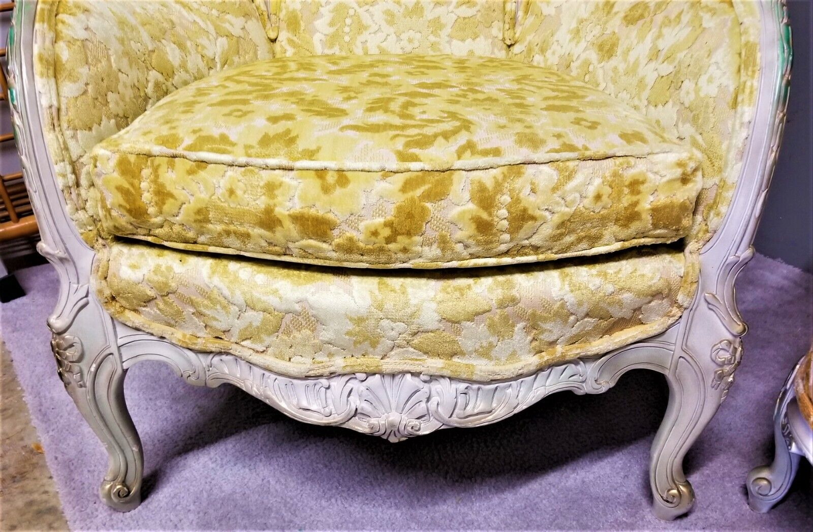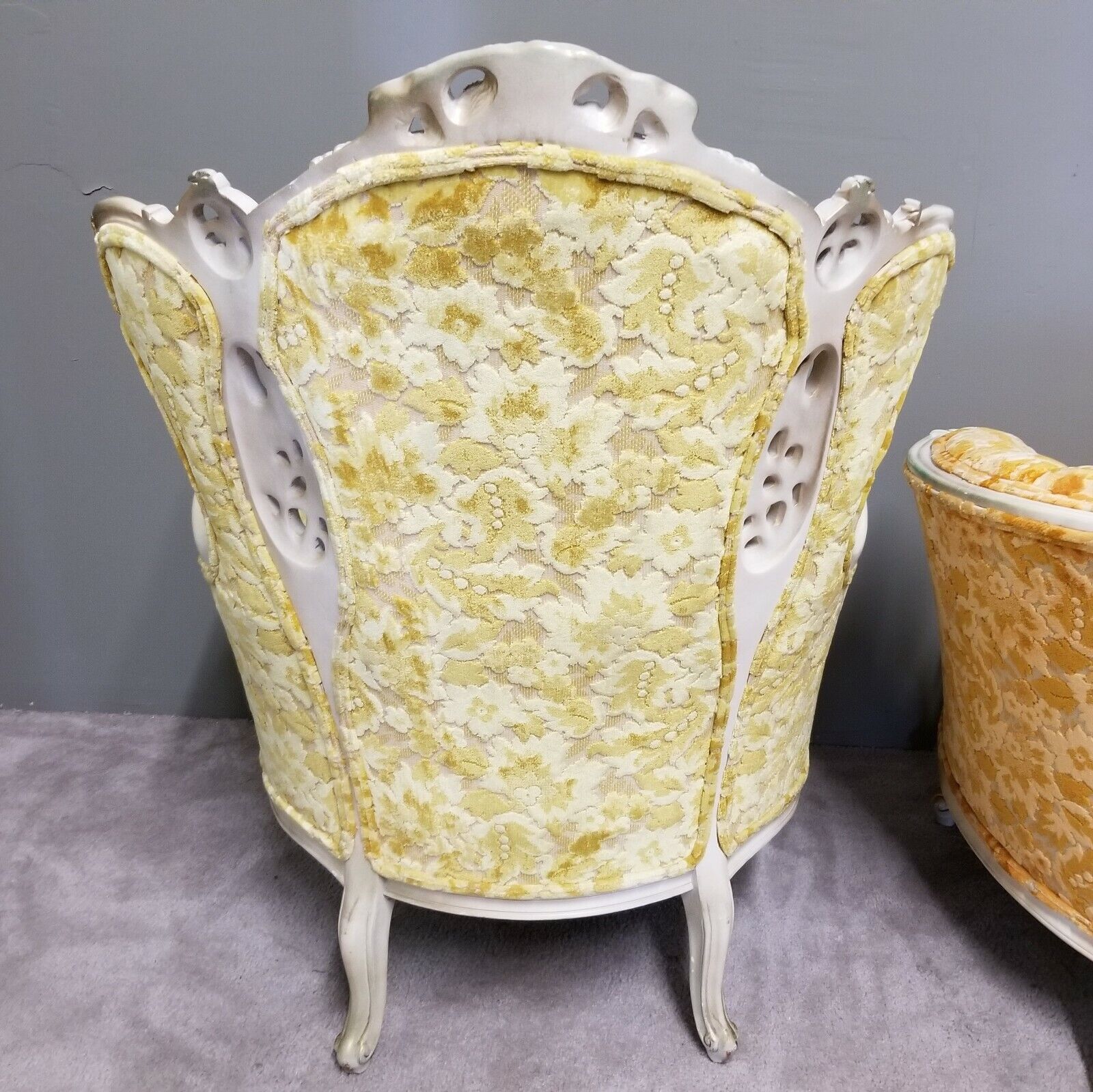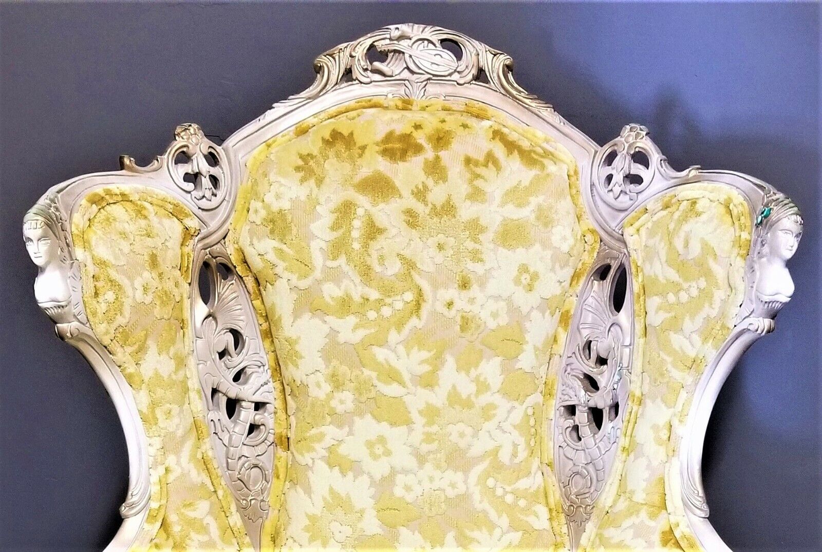 EUC! Antique French Louis XV Rococo Hand Carved Burnout Velvet Wing Back Chair