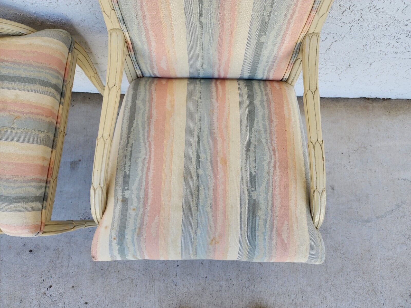 Very solid and well built chairs. Fabric needs to be replaced. They have some nicks and dings the worst of which are shown in photos 8-12. The photos are an important part of the item description and condition so please use the zoom feature to view them closely.