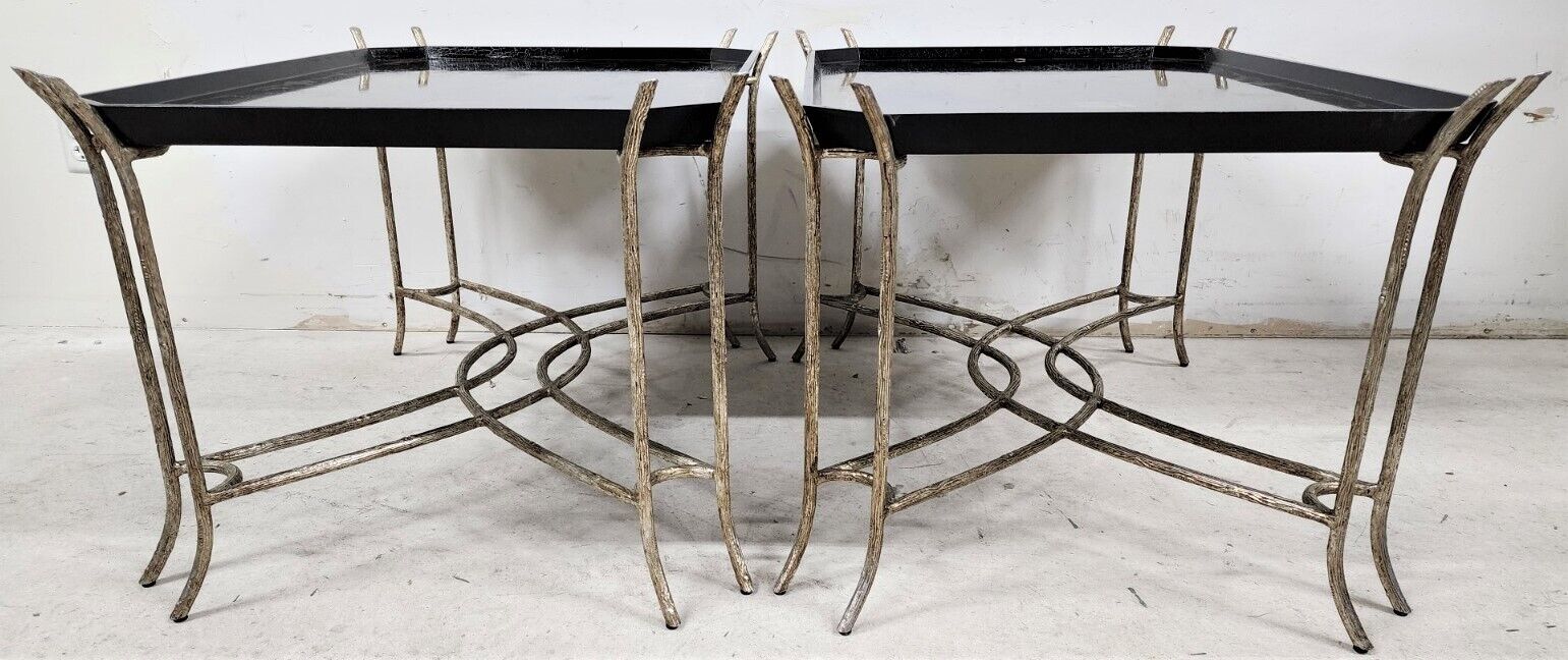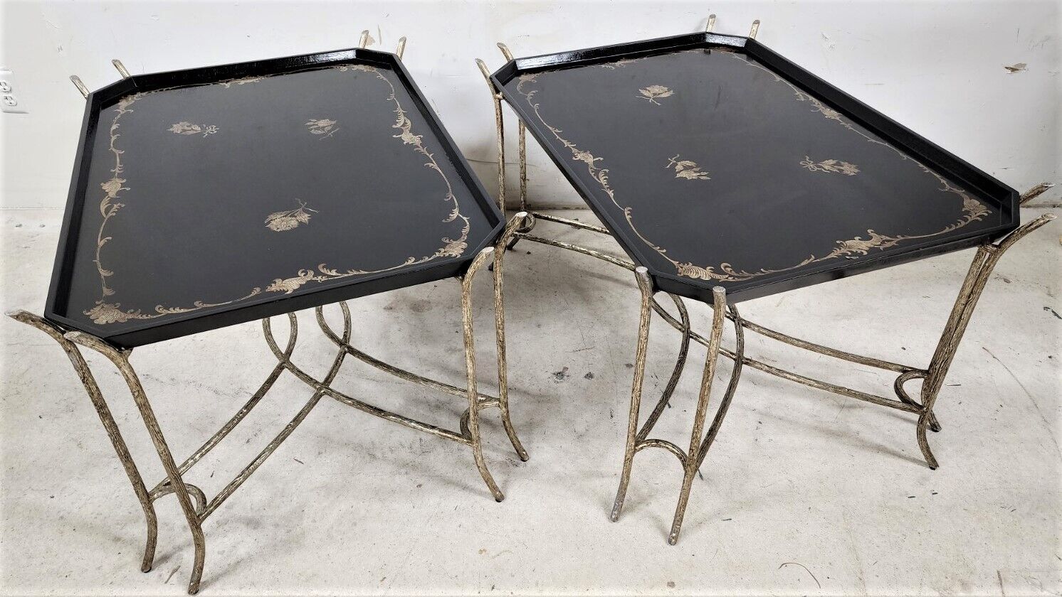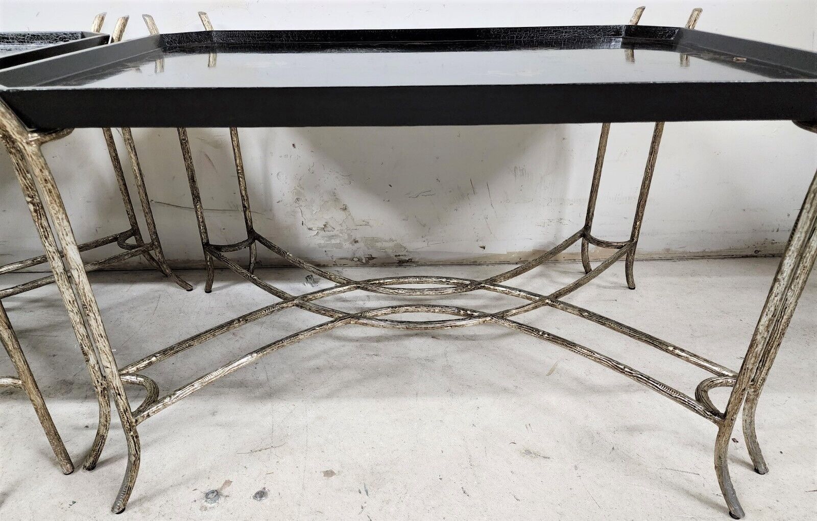 Featuring silver leafed faux bois cast iron frames and lacquered black top trays.