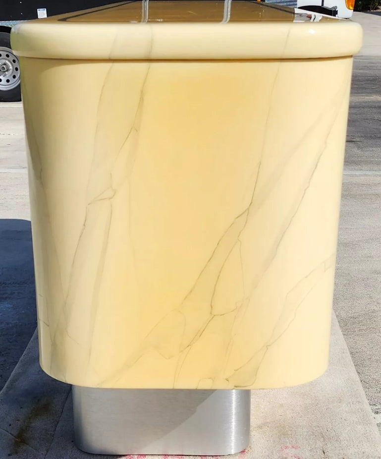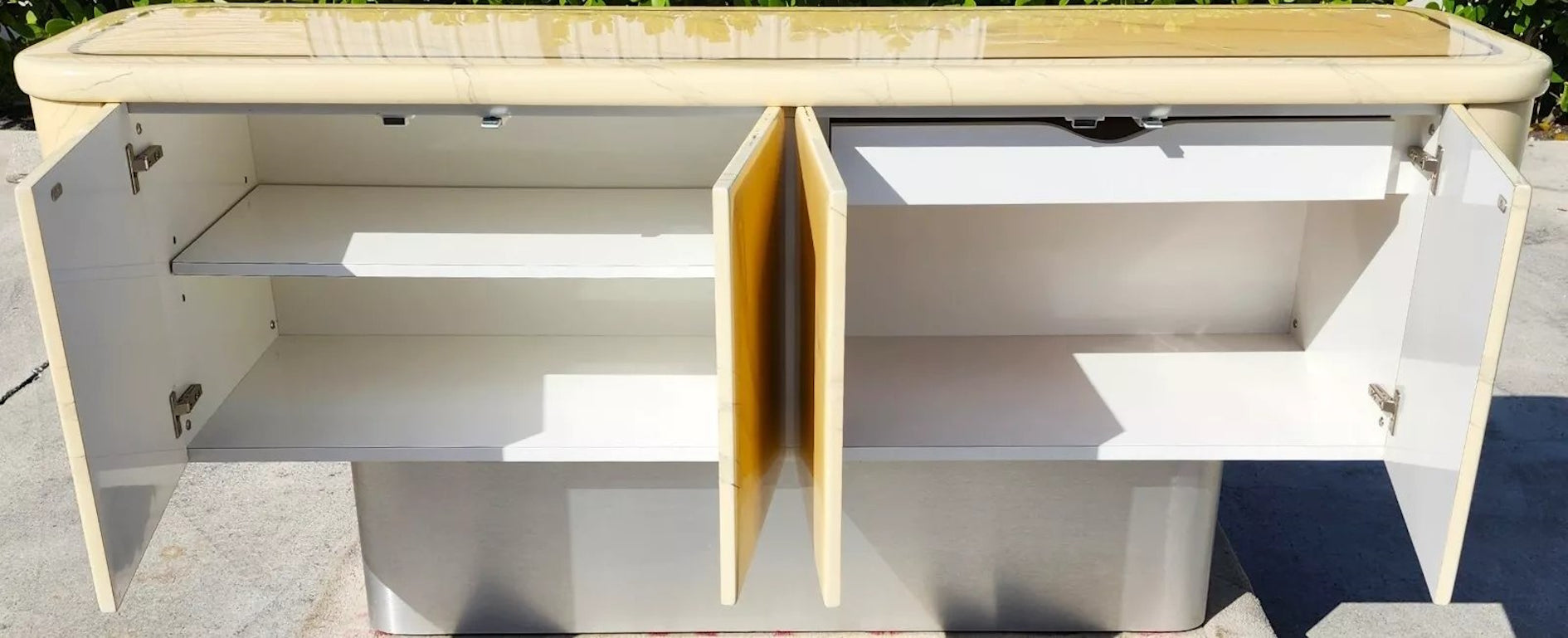 1970s Faux Goatskin Buffet Sideboard on a Metallic Plinth, with 1 drawer, 1 adjustable shelf.