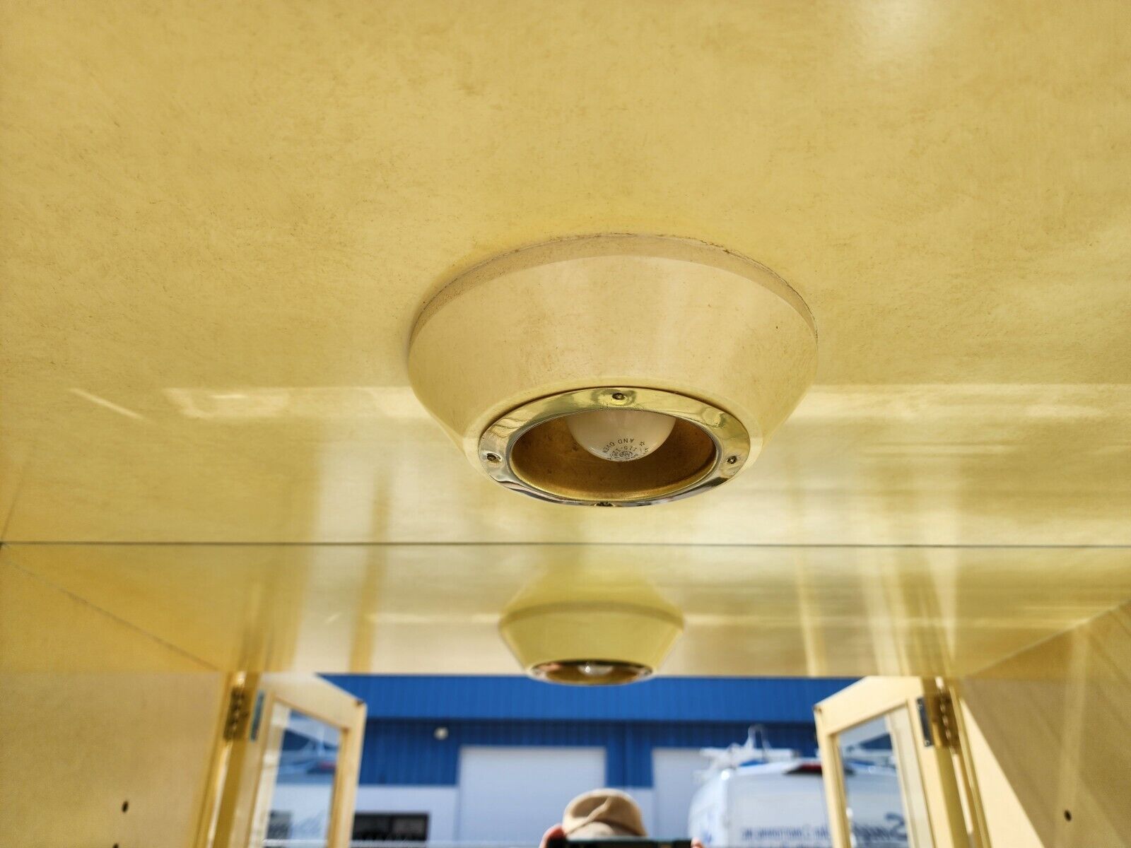 Featuring brass trim on the sides and fronts, all (glass and wood) adjustable shelves, and a lit center cabinet.
