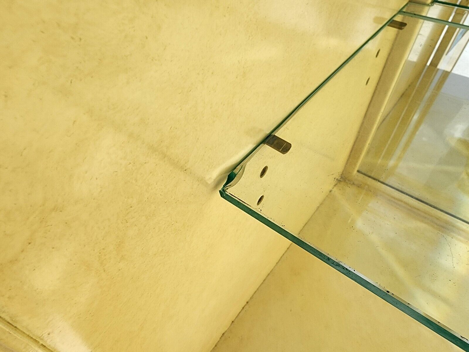 Very well-built pieces. Made of solid wood, they are structurally sound and sturdy. There are a few small spots of light wear to the outside finish which are visible upon close examination. 2 glass shelves have a small chip on their front corner as shown. The photos are an important part of the item description and condition so please use the zoom feature to view them closely.
