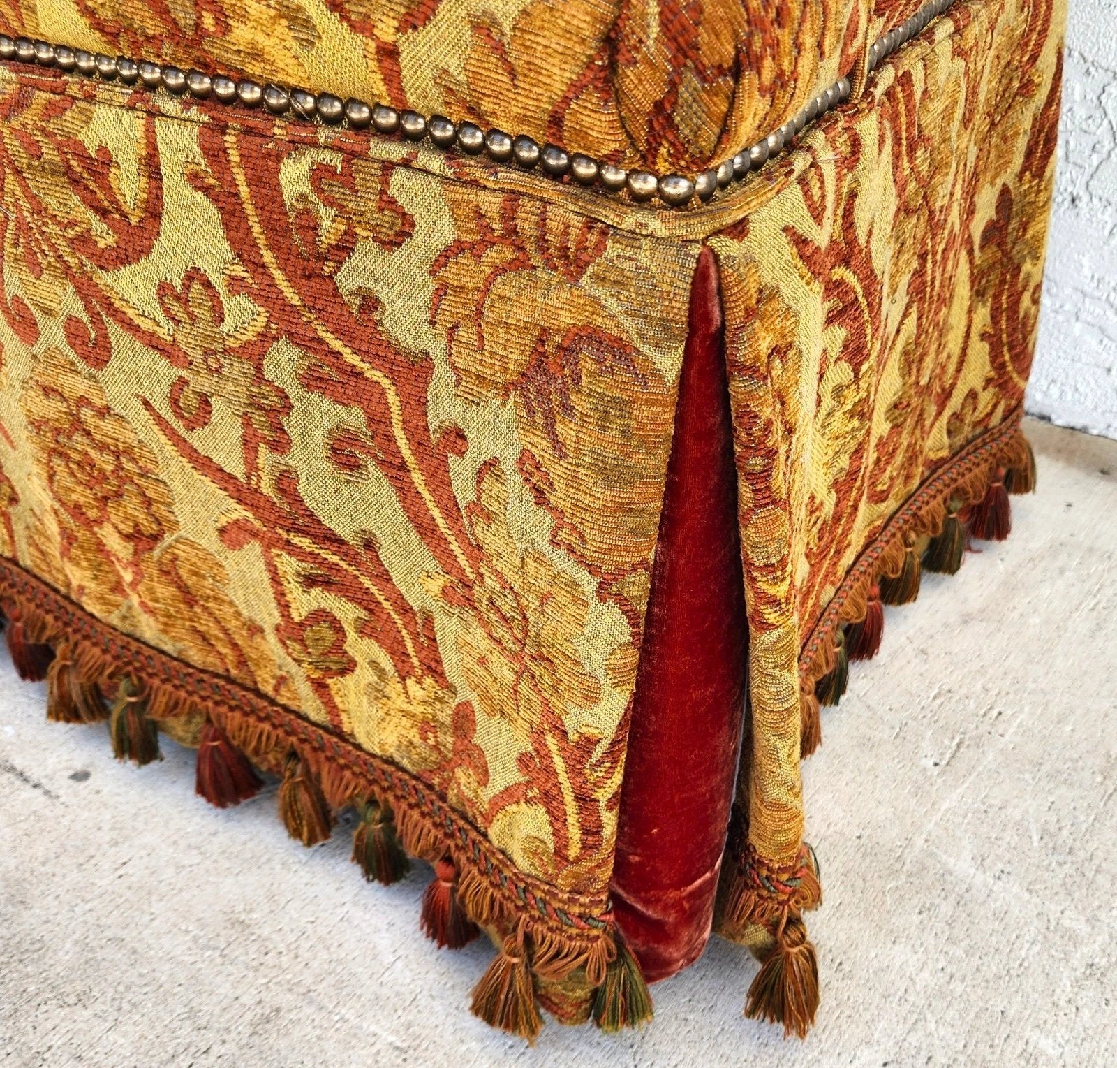 With beautiful Damask Cotton upholstery with down feather padding.