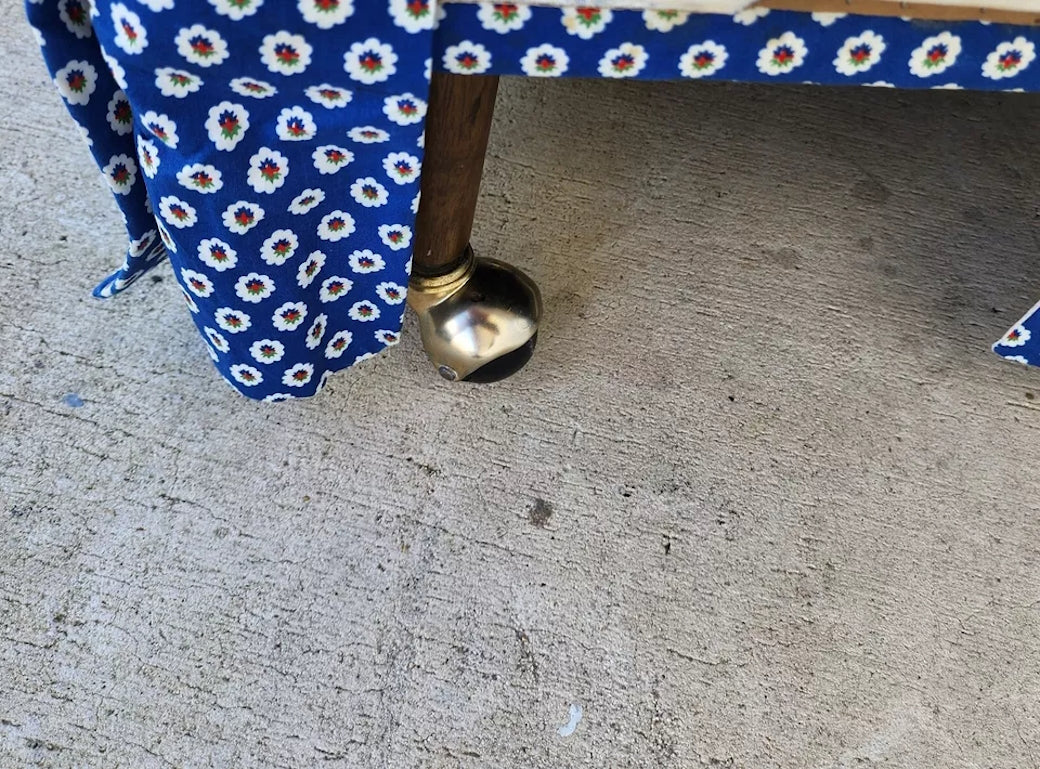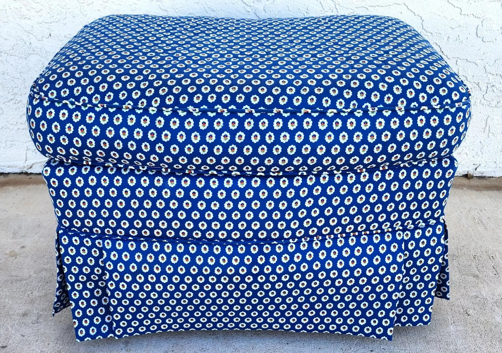 In good, structurally sound condition with spotless fabric EXCEPT there is a stain on 1 corner of the skirt which you have to lift up the skirt to see (see last photo). The photos are an important part of the item description and condition so please use the zoom feature to view them closely.
