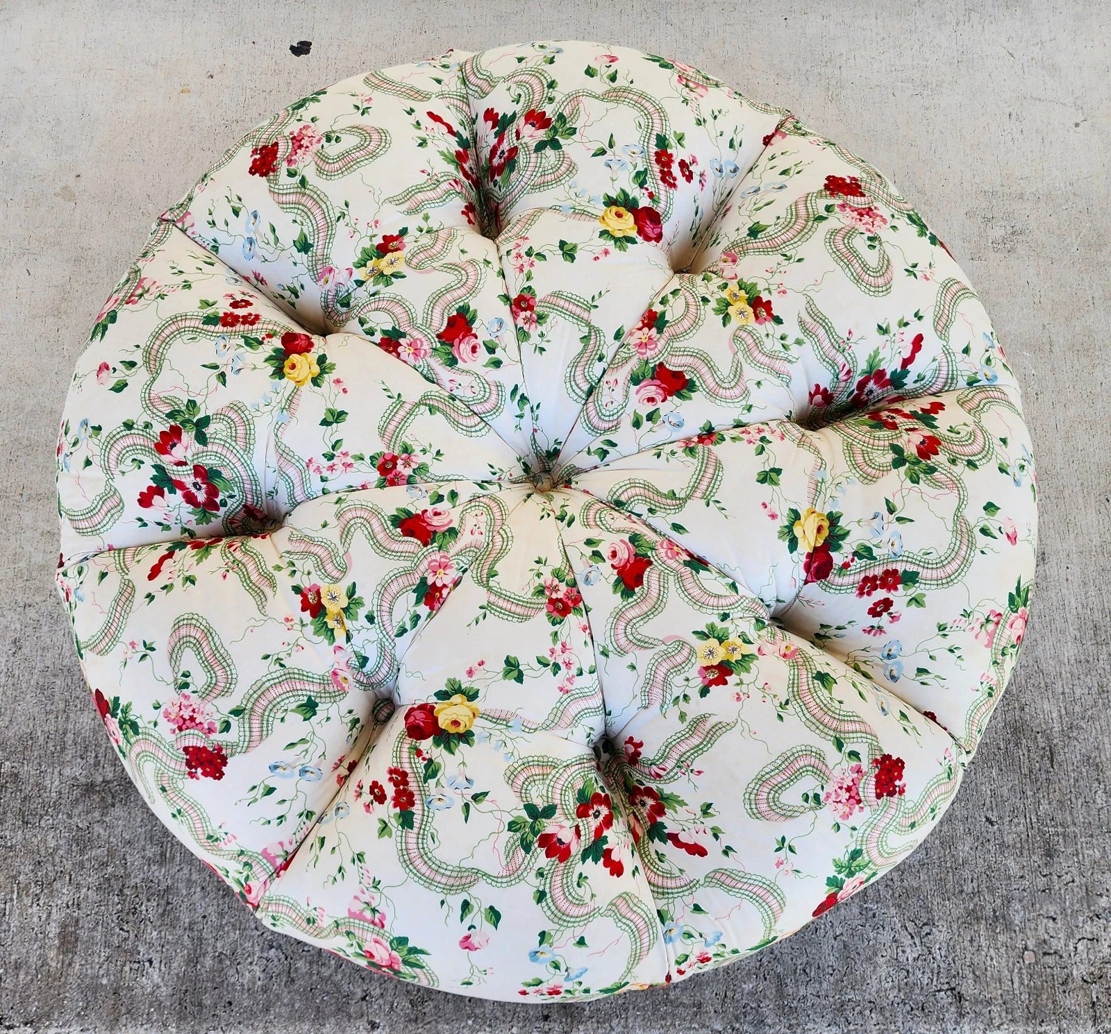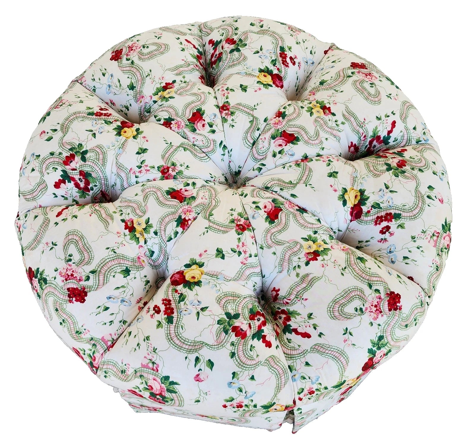 Lovely Shabby Chic Cottage Tufted Round Ottoman with Floral Roses Fabric