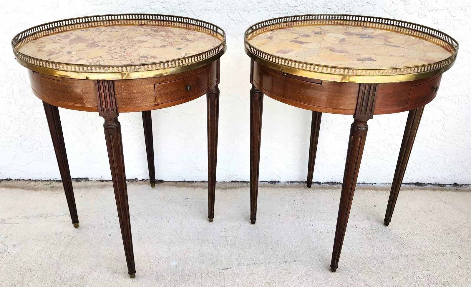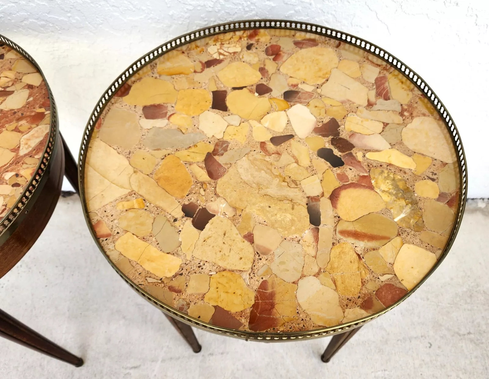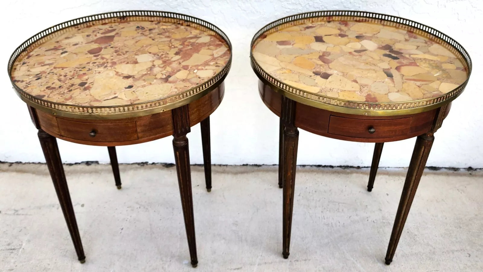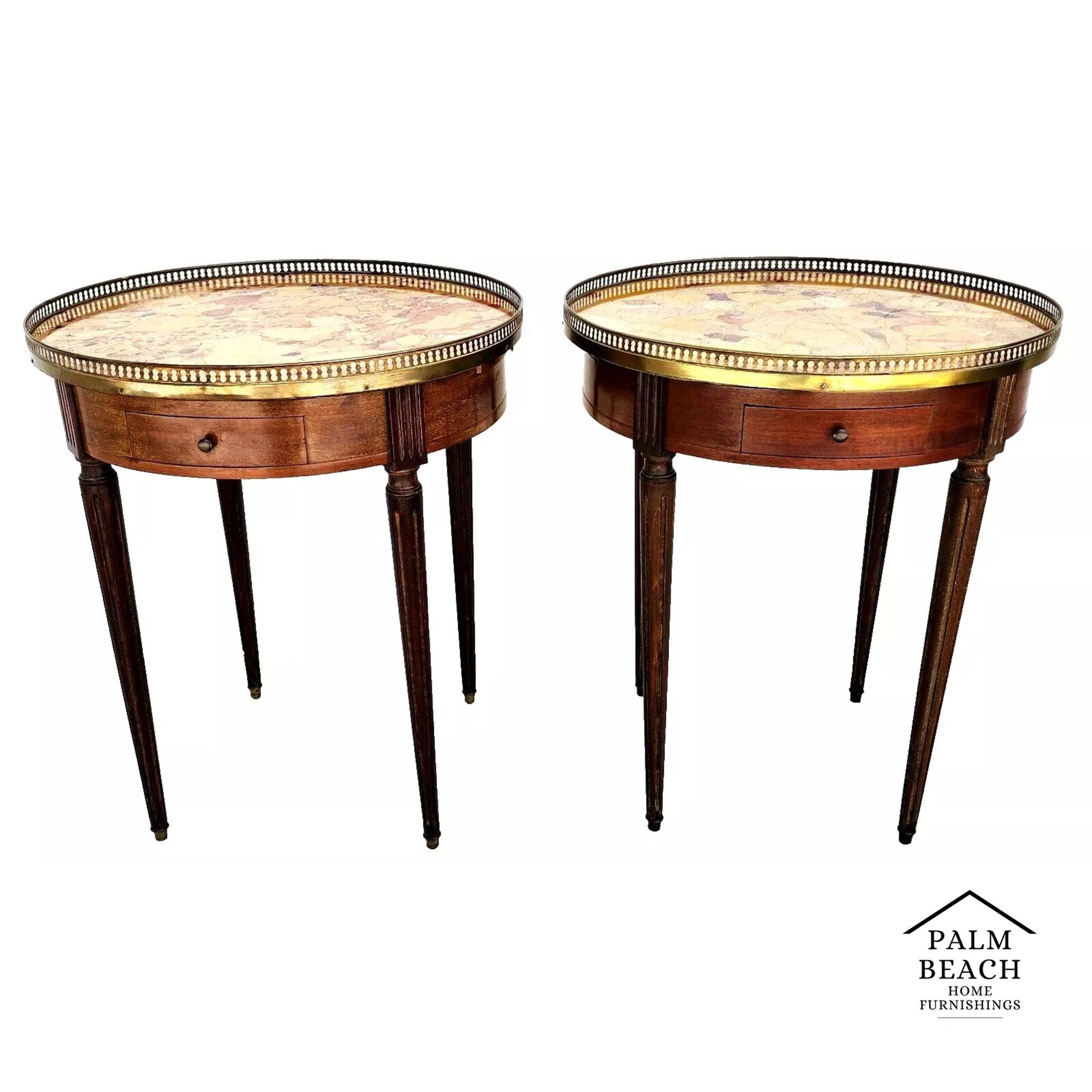 Pair of FRENCH BOUILLOTTE TABLES WITH BRECHE D'ALEP MARBLE TOPS
