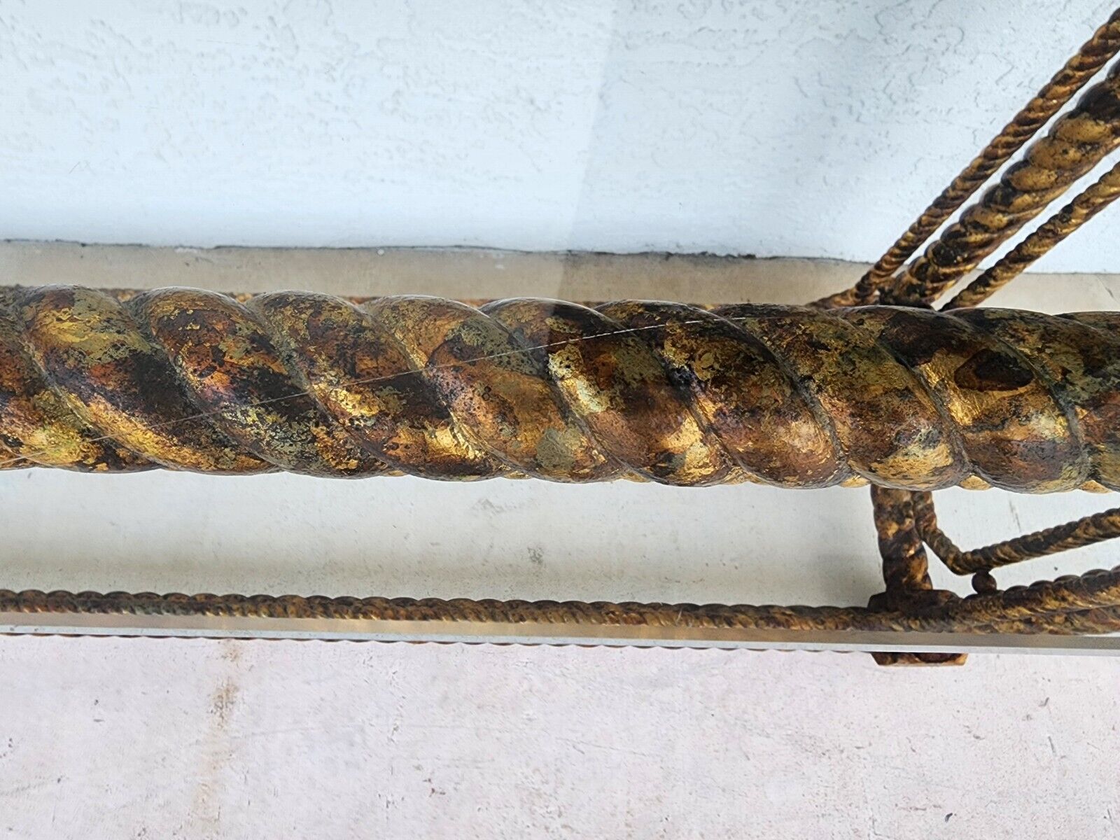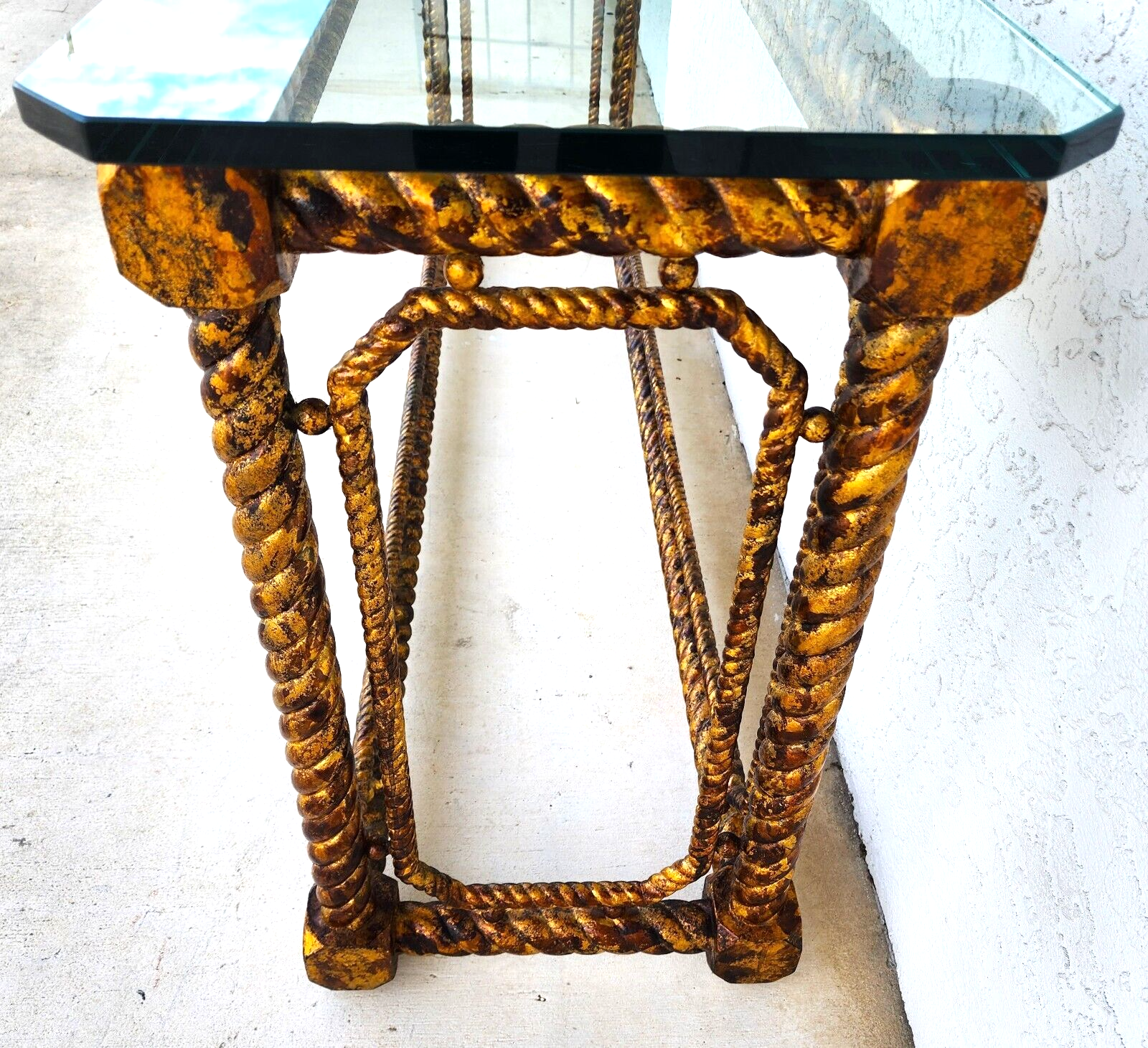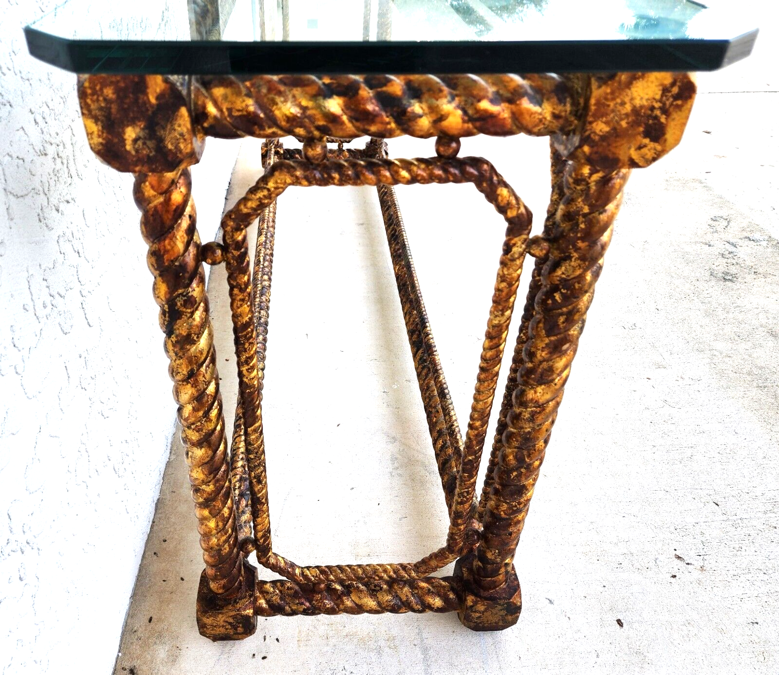 In good, structurally sound, and sturdy condition with no notable damage to the base. Glass top has no chips but has some scratches some of the worst of which are shown. The photos are an important part of the item description and condition so please use the zoom feature to view them closely.