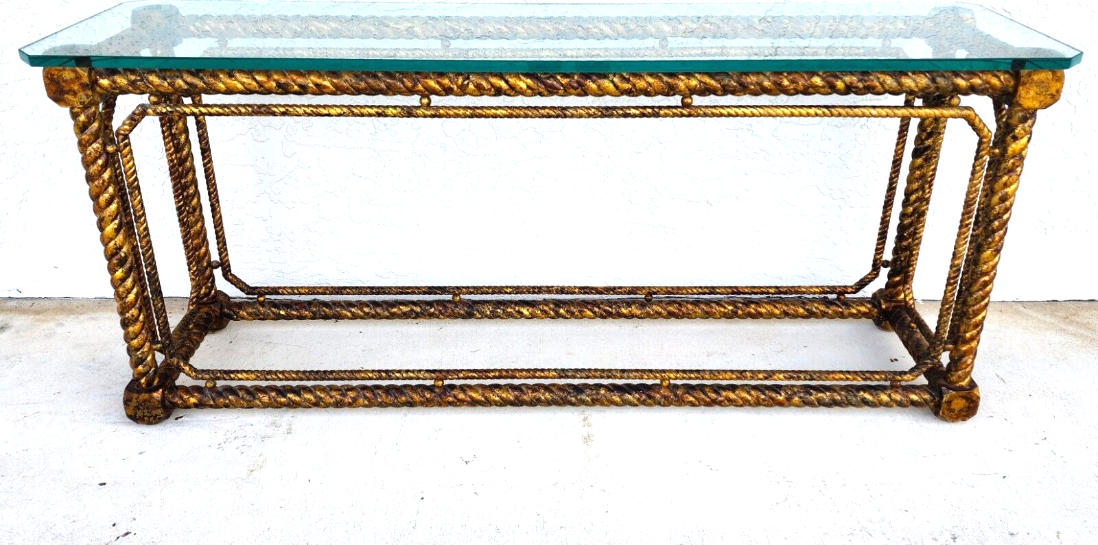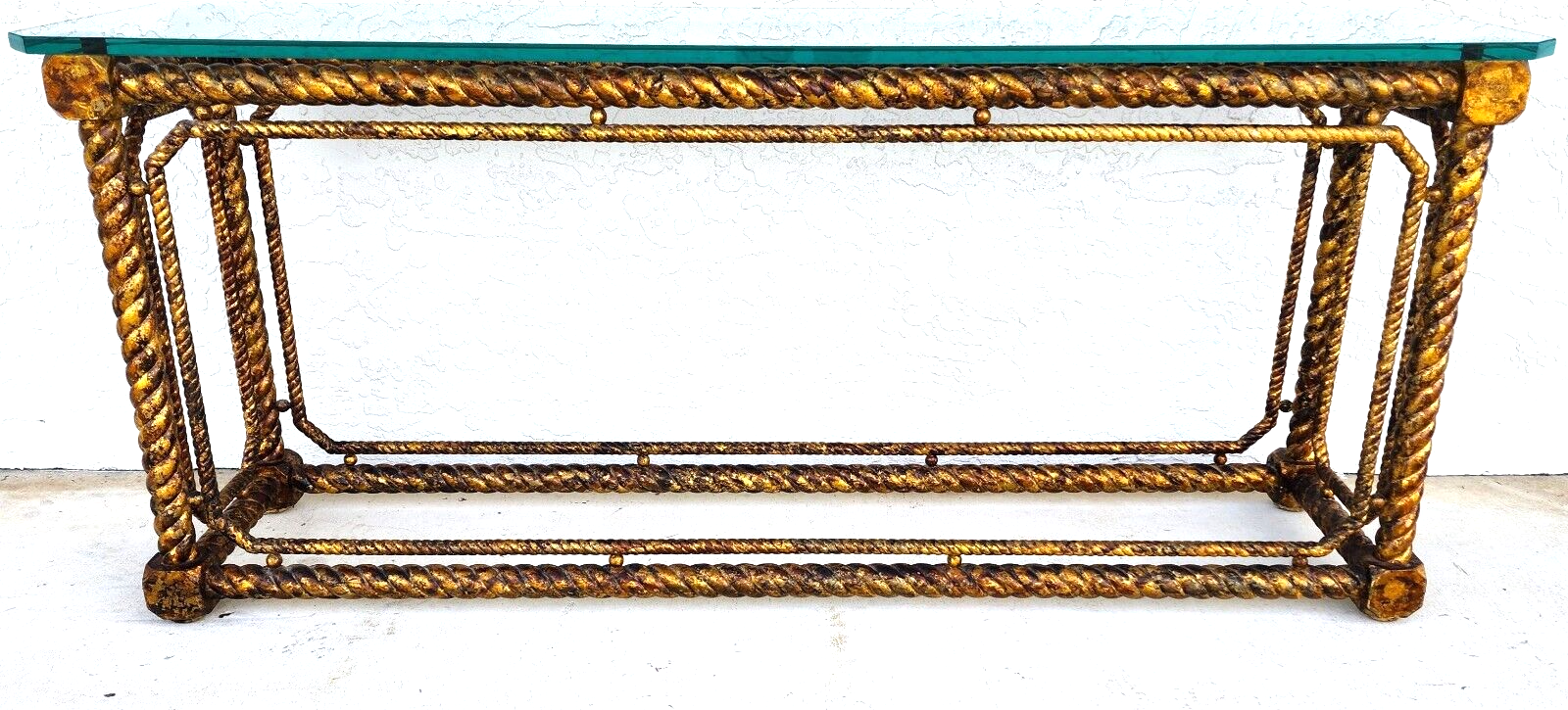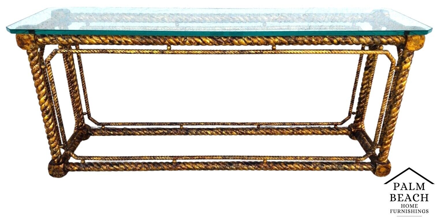 Mid Century French Louis XV Style Giltwood Barley Twist Console Sofa Table