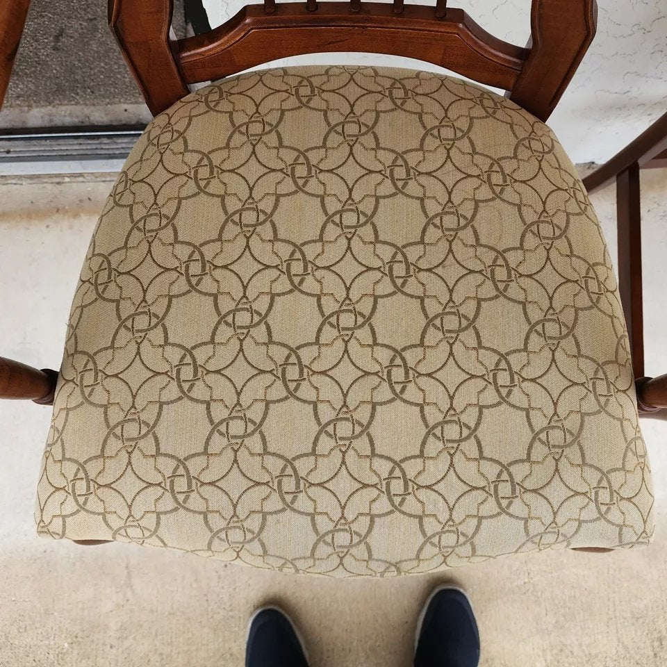These are very well-made and solid, and in very good, structurally sound, and sturdy condition with no notable damage EXCEPT one seat has some faint stains as shown in last photo. The photos and video are an important part of the item description and condition so please use the zoom feature to view them closely.