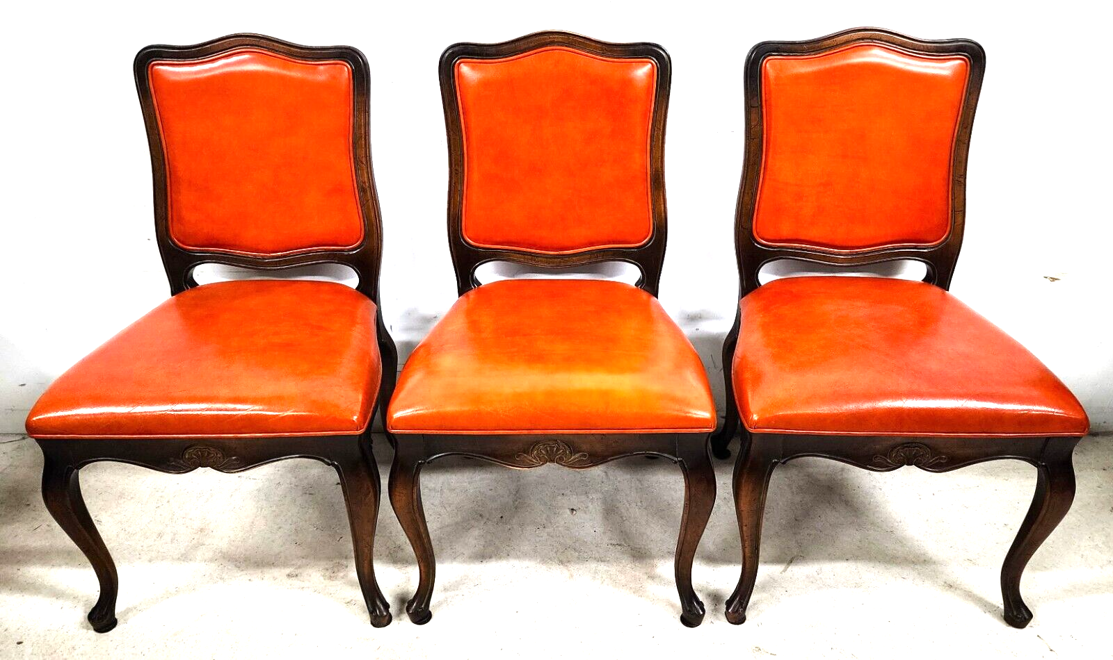 Set of 3 Vintage French Provincial "Chambly" Dining Chairs with Leather Upholstery and Fruitwood Frames by HICKORY CHAIR Co